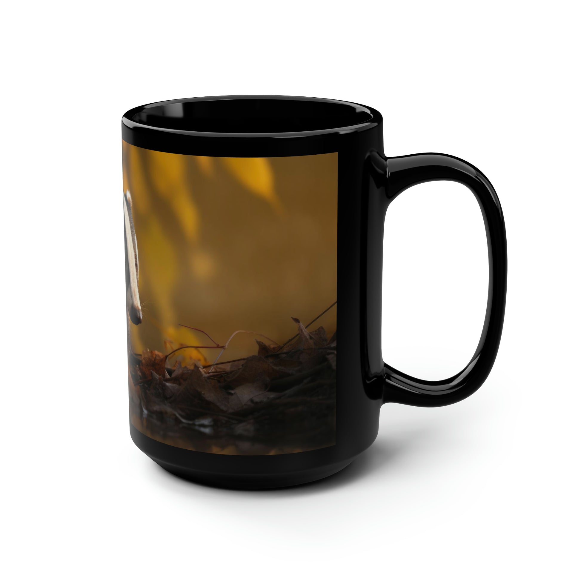 Unveiling our striking 15-ounce Badger Mug, intricately designed to elevate your beverage experience. Crafted from durable black ceramic, this mug showcases a vivid badger illustration, creating an eye-catching design.