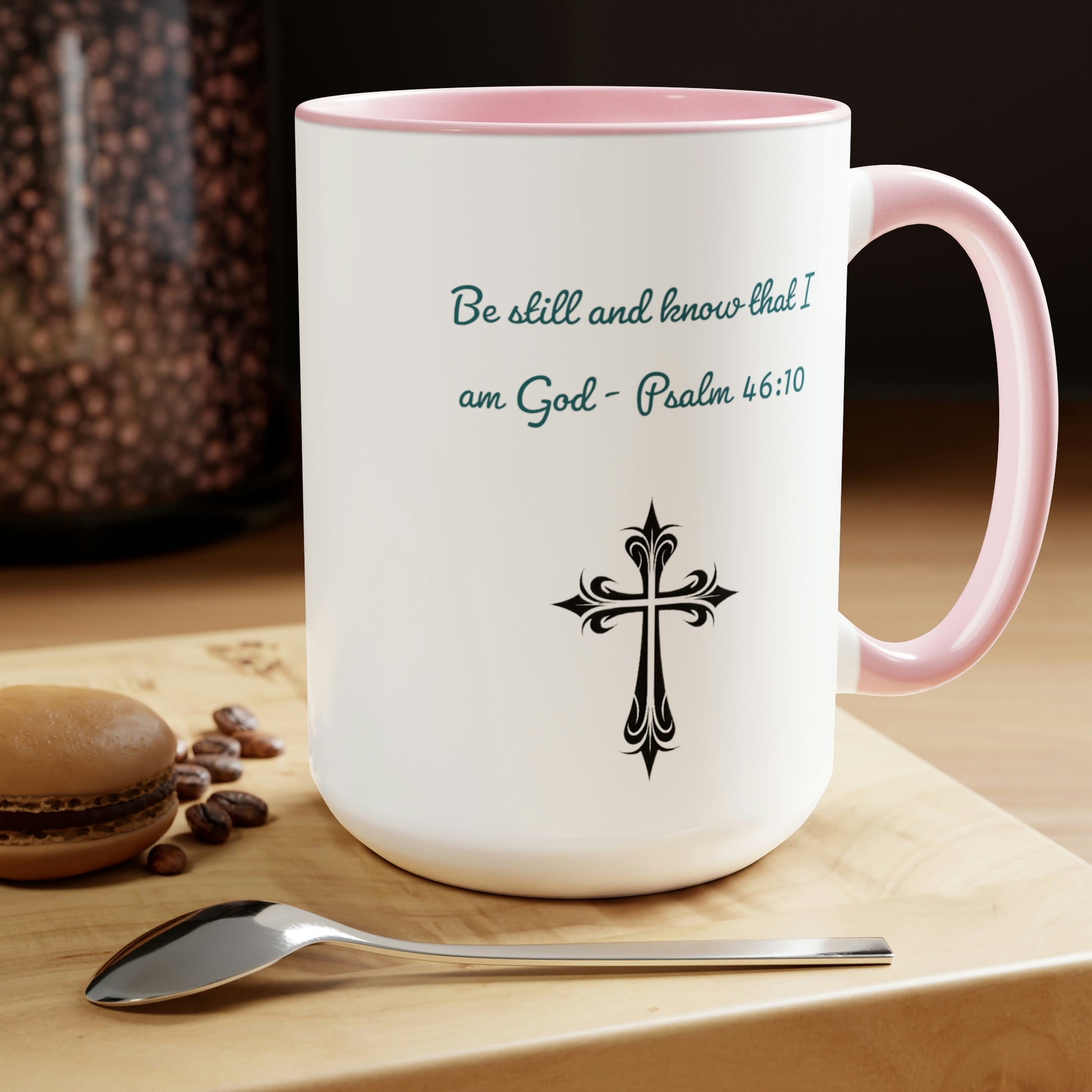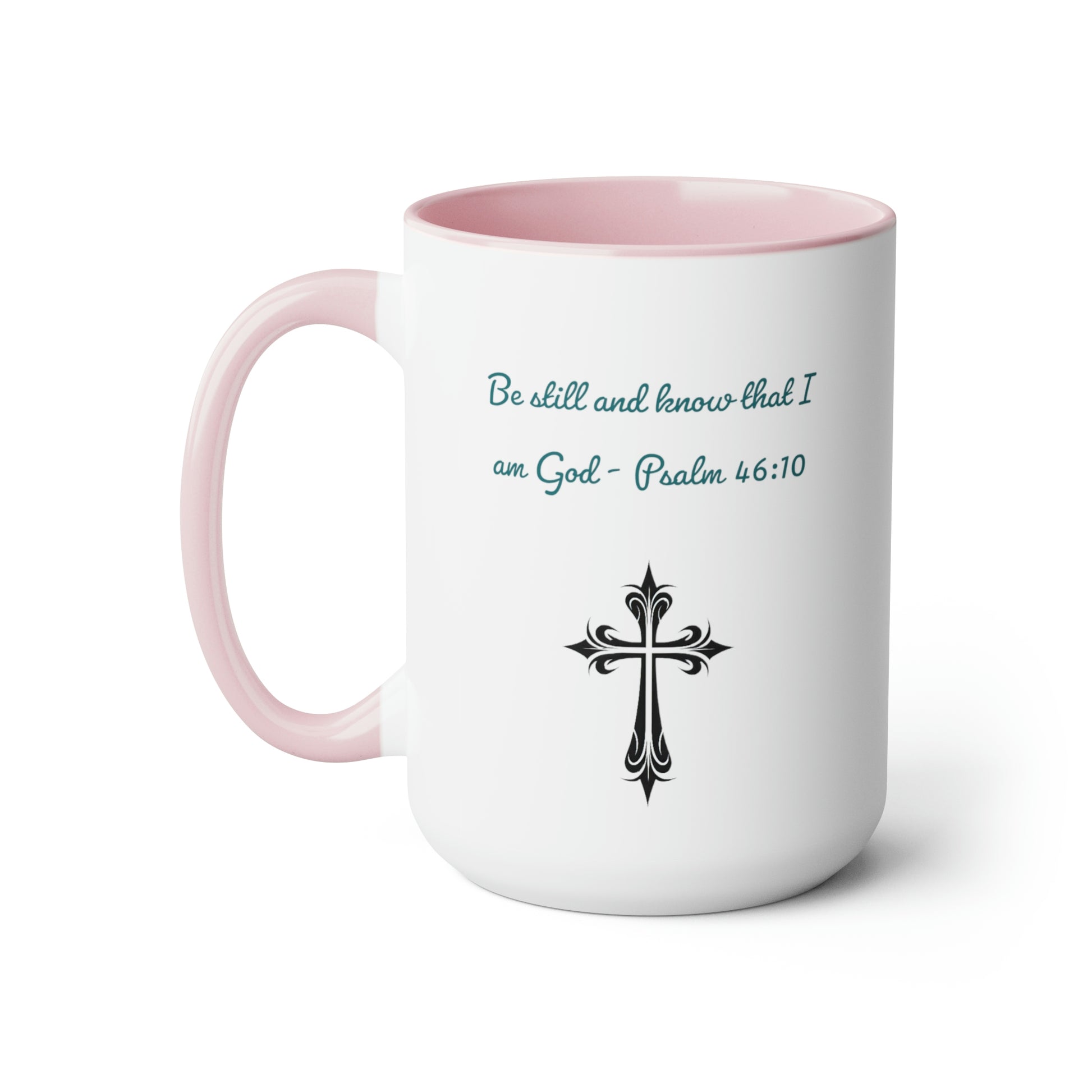 Introducing our Be Still and Know Psalm Two-Tone Coffee Mug, designed to bring both inspiration and style to your morning routine. This 15-ounce mug features a vibrant colored handle and interior, available in 4 different color options, adding a touch of personalization to your drinkware collection.