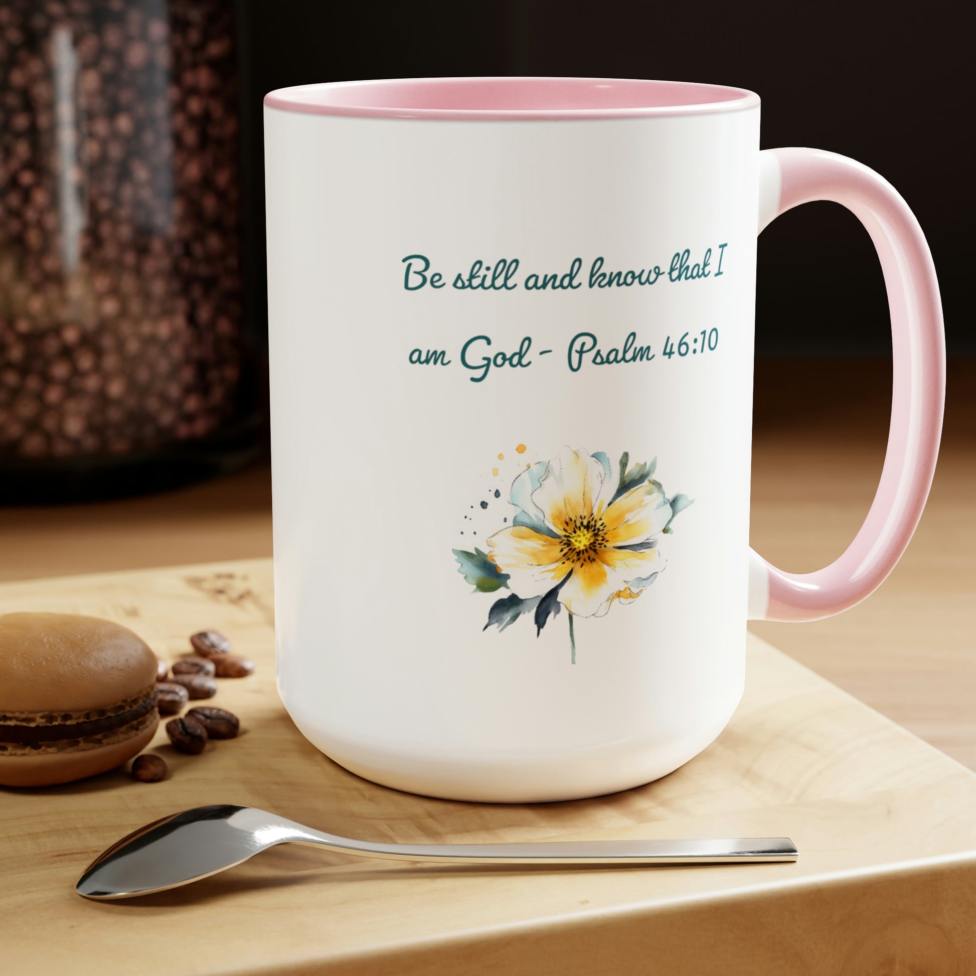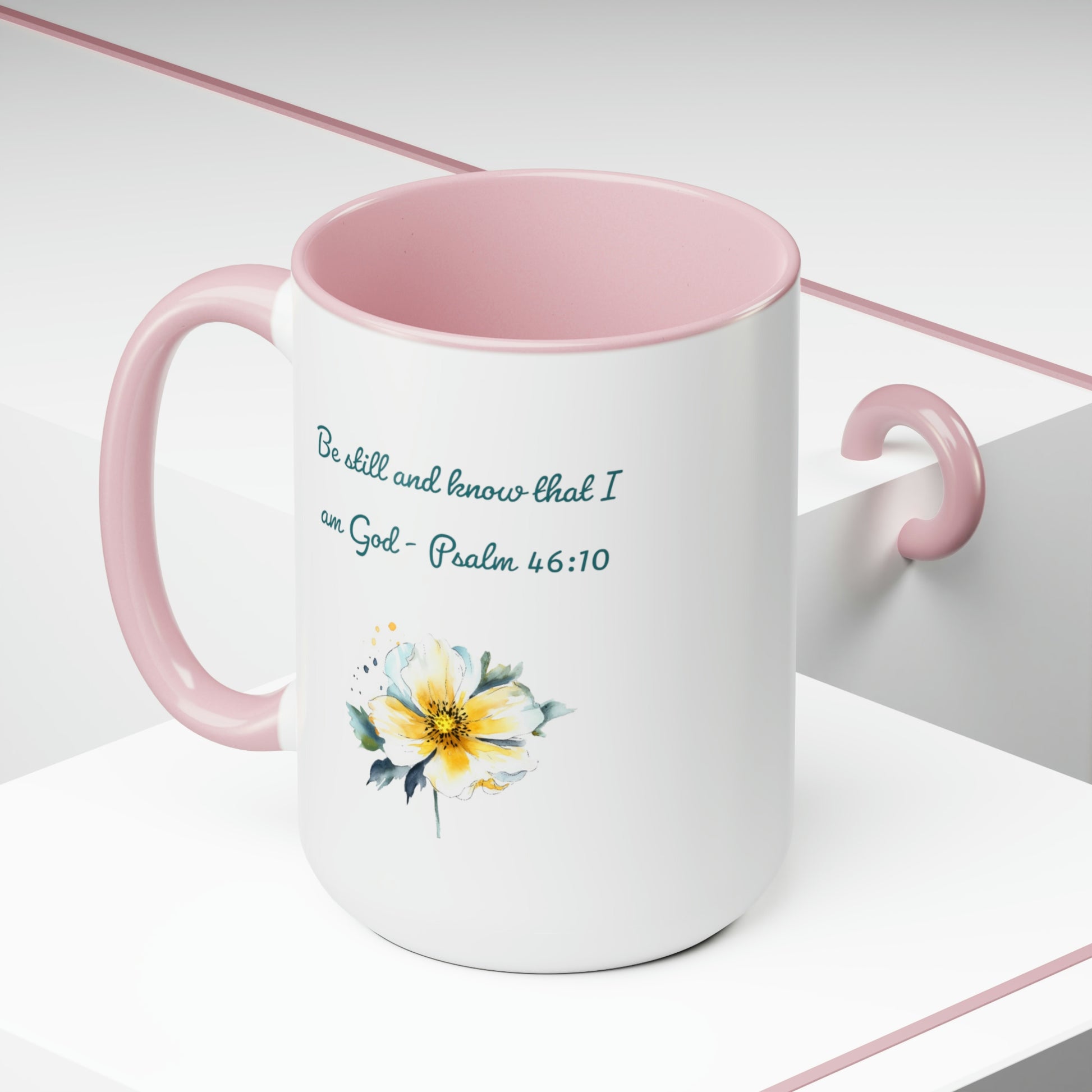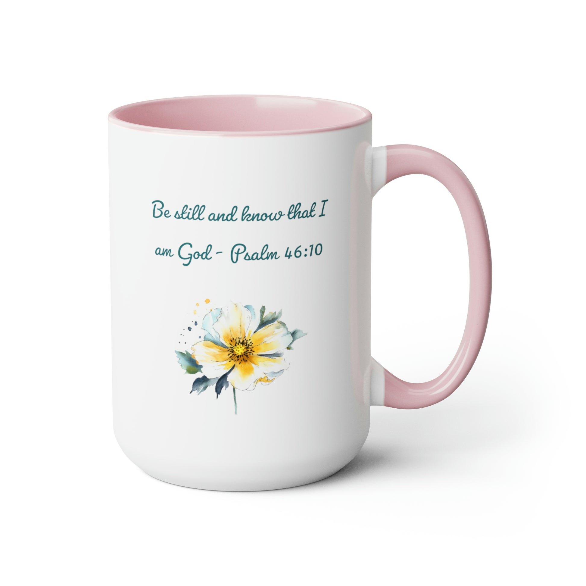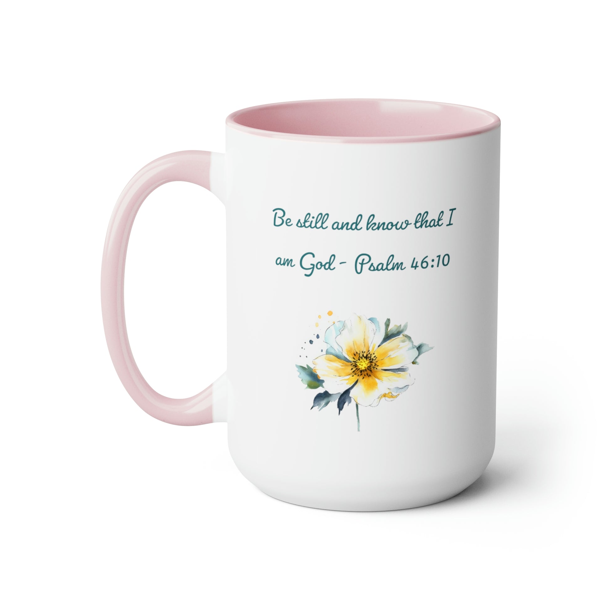 Introducing our Be Still and Know Psalm Two-Tone Coffee Mug, designed to bring both inspiration and style to your morning routine. This 15-ounce mug features a vibrant colored handle and interior, available in 3 different color options, adding a touch of personalization to your drinkware collection.