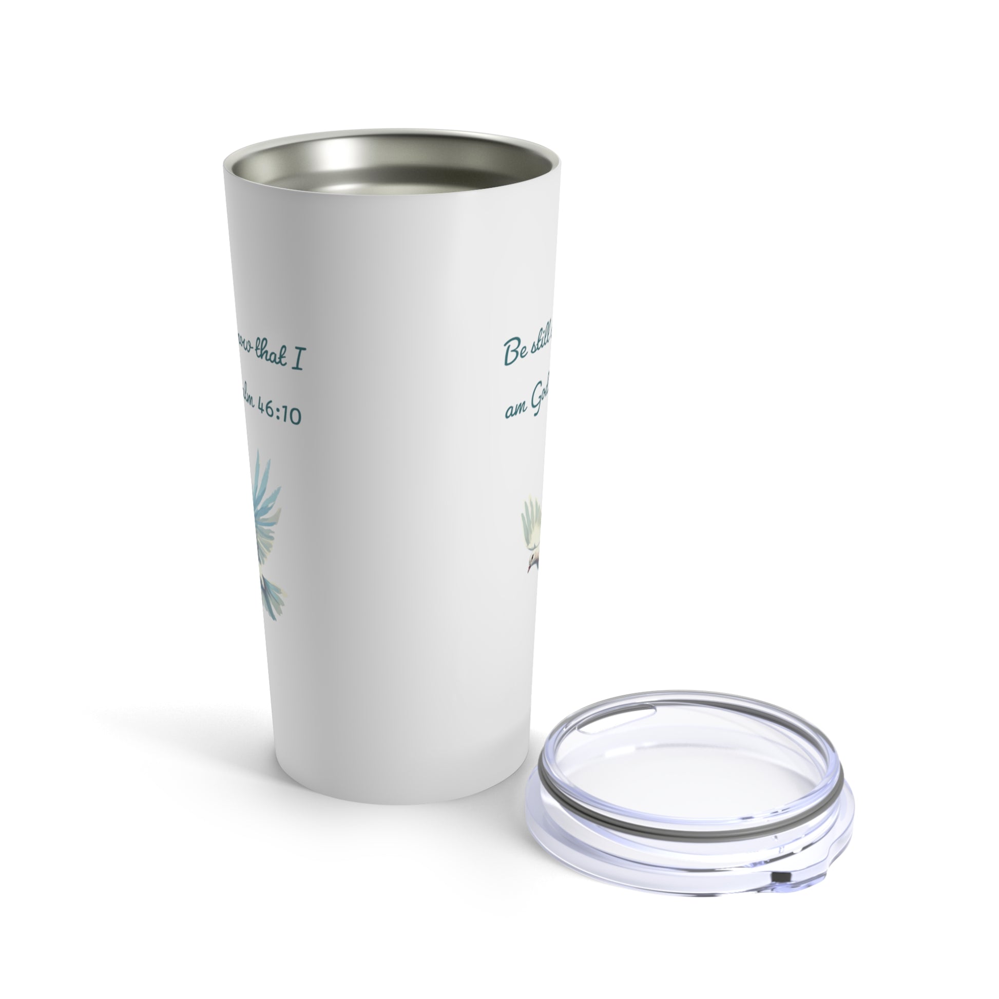 Be Still and Know, White Stainless Steel Tumbler 20oz