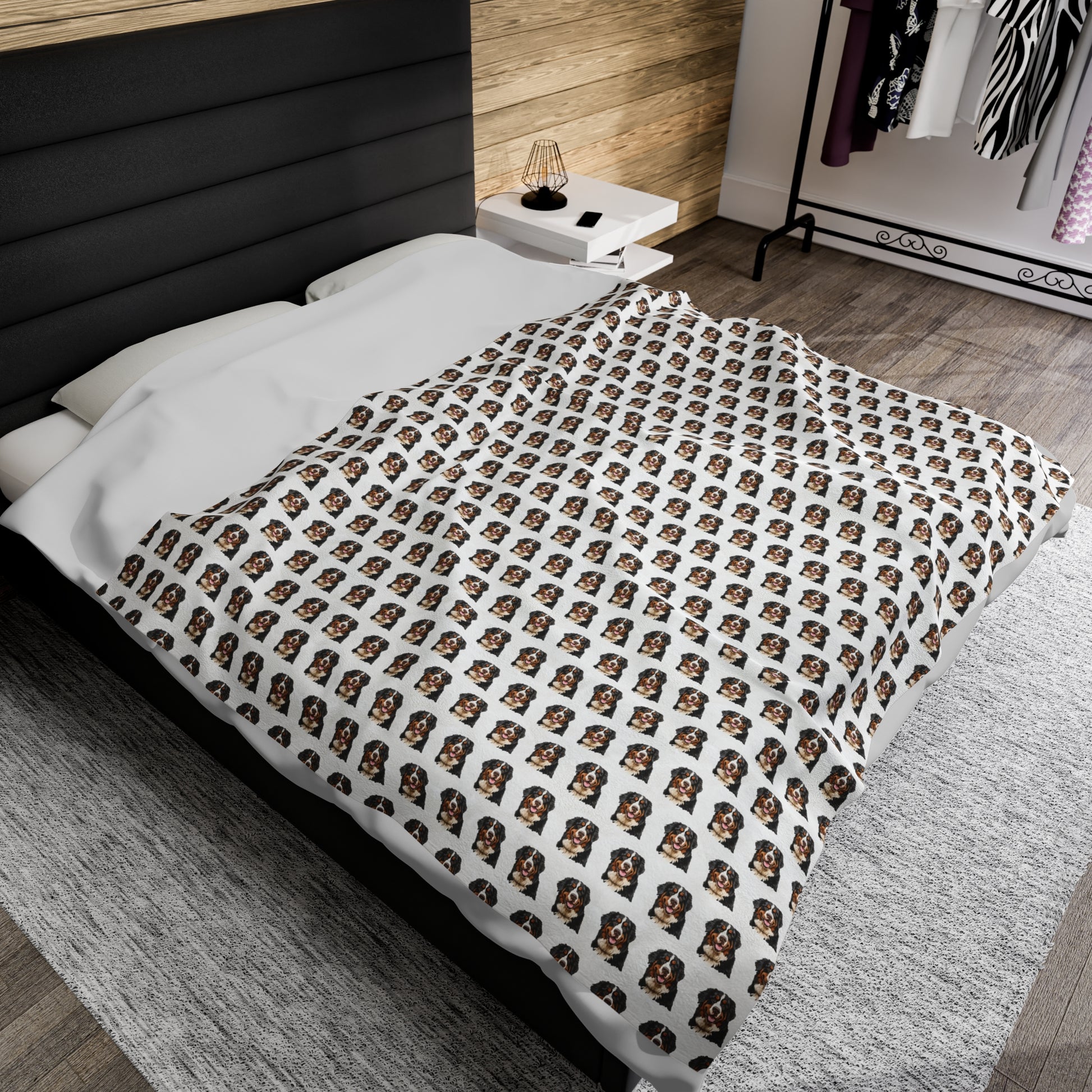 Bernese Mountain Dog Blanket (Velveteen Plush, White)