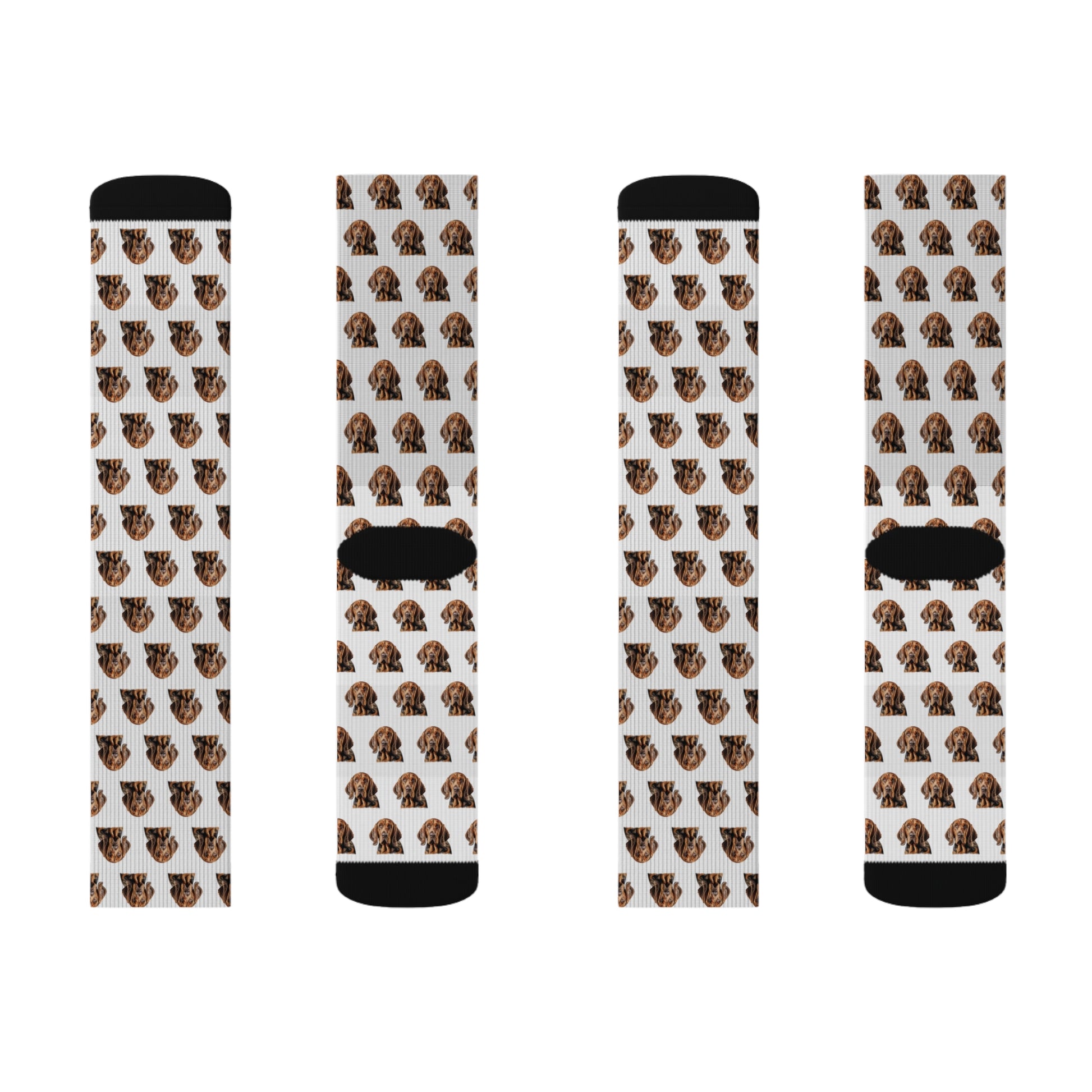Celebrate your love for Bloodhounds with our vibrant and stylish socks! Featuring a unique Bloodhound pattern, these high-quality socks provide optimum comfort and a splash of fun to any outfit. They serve as a subtle accent to complement a professional look or an eye-catching statement for a more extravagant ensemble.