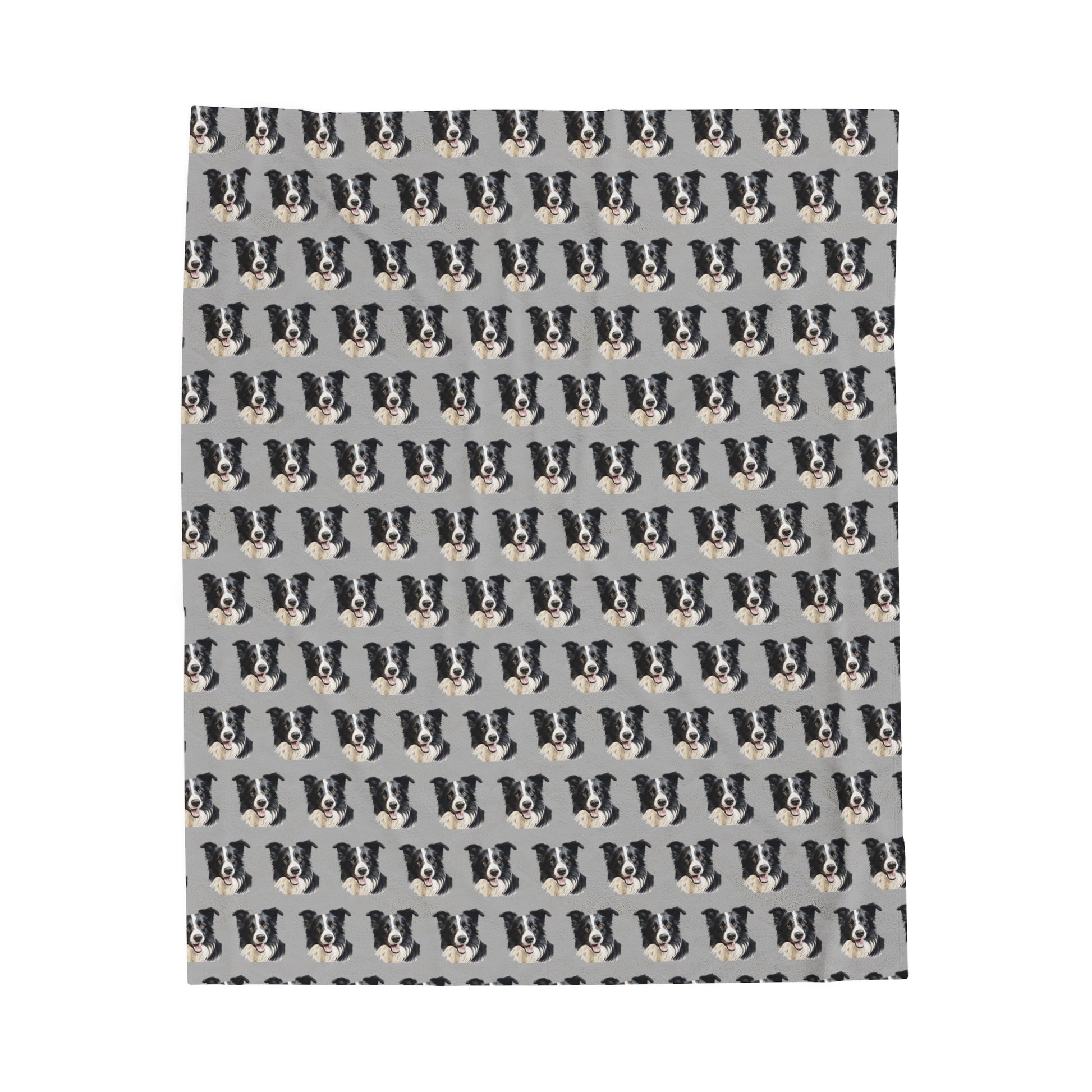 Border Collie Velveteen Plush Blanket - Light Grey Background