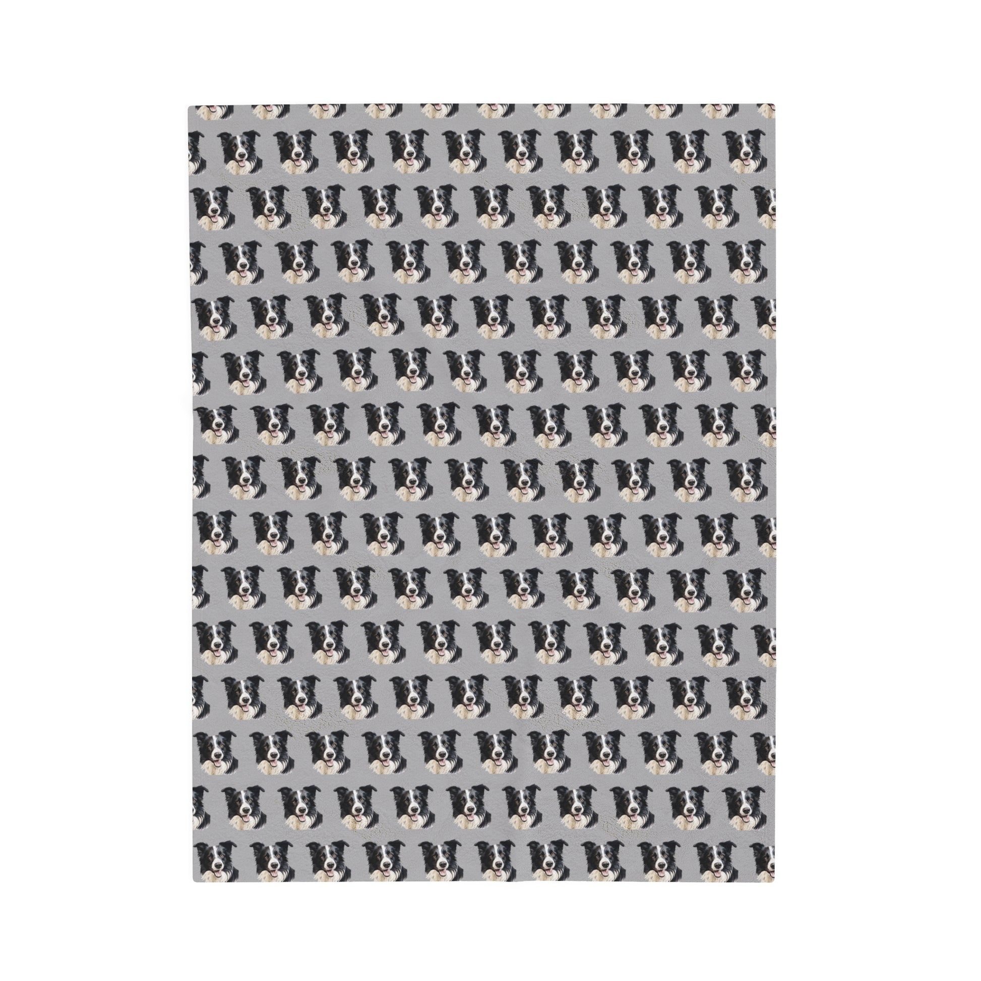 Border Collie Print Plush Velveteen Blanket Create a snug and inviting atmosphere at home with our plush velveteen blanket, featuring an adorable Border Collie print. This luxuriously soft and cozy blanket is perfect for adding warmth and a personal touch to any space.