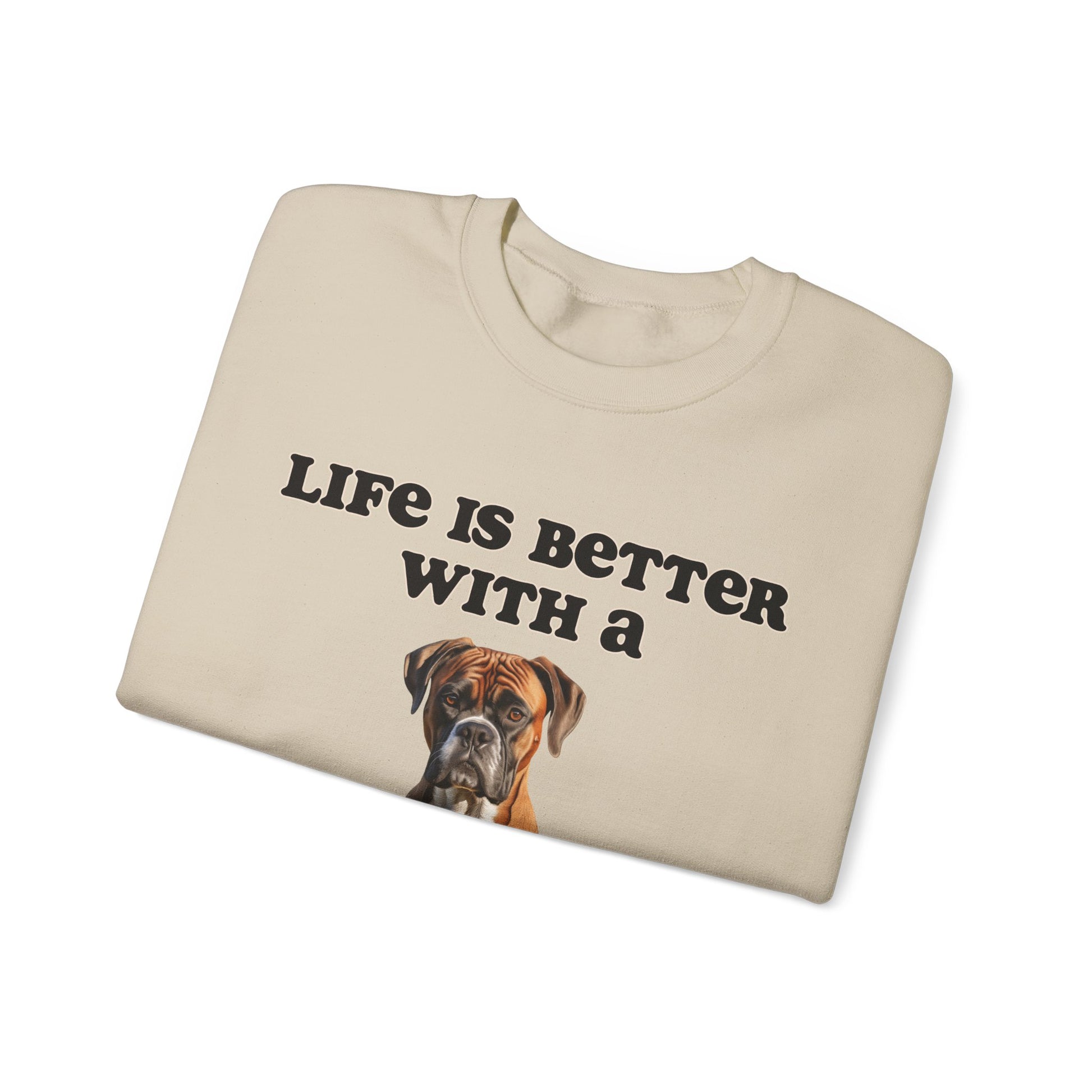 Life is Better with a Boxer Sweatshirt Embrace comfort and your love for Boxers with our exclusive "Life is Better with a Boxer" unisex sweatshirt. Tailored for both style and warmth, this sweatshirt is ideal for showcasing your affection for these brave and loyal companions.