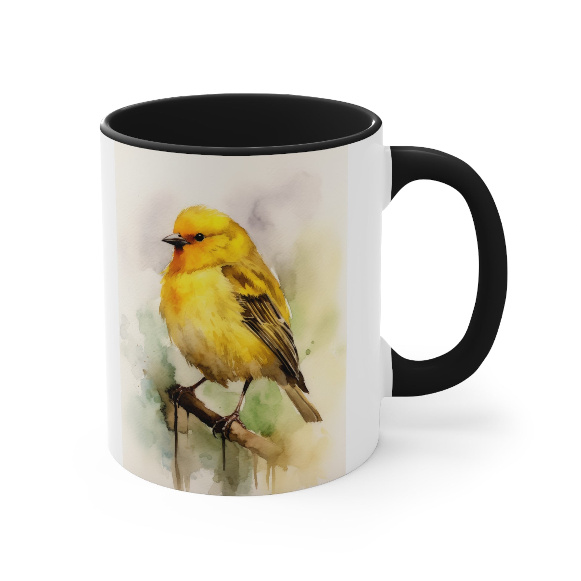 Canary Watercolor Accent Coffee Mug 3, 11oz