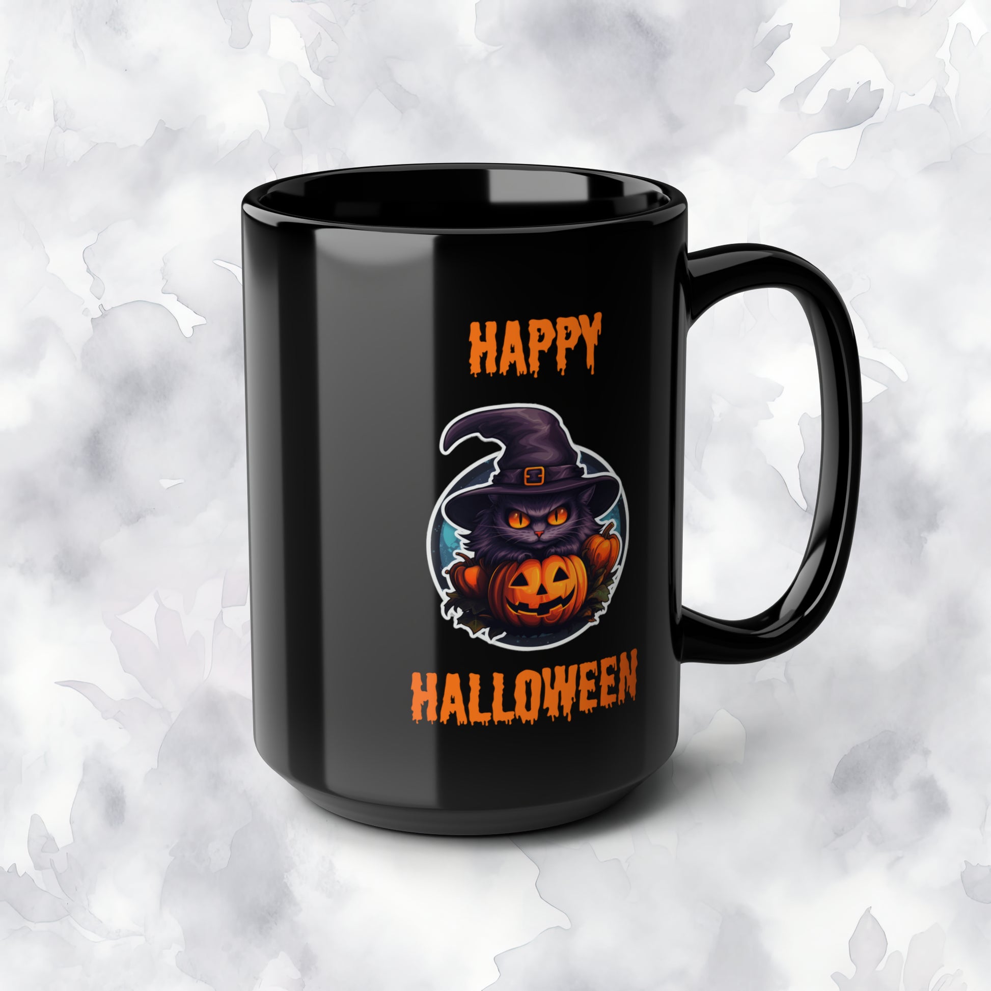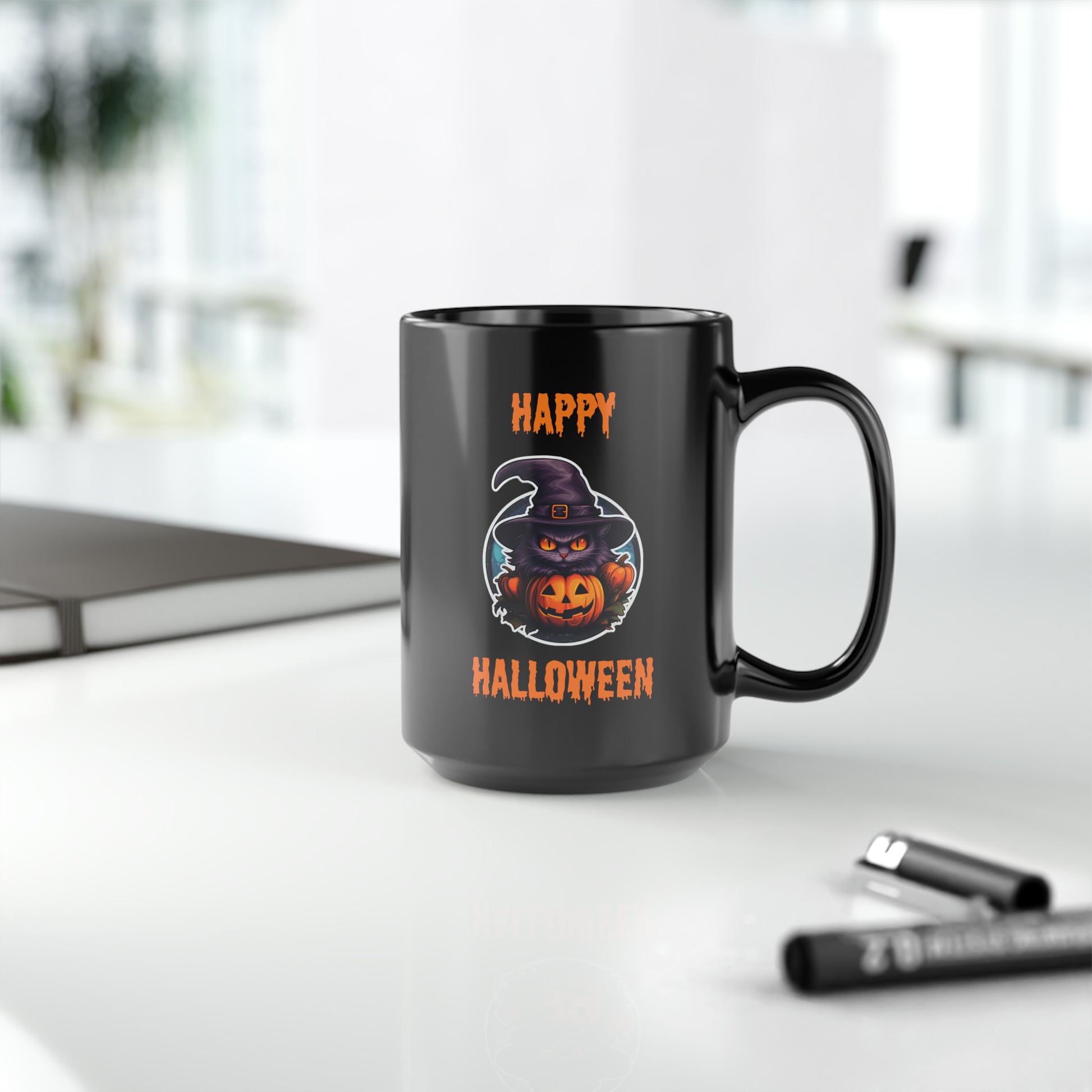 Cat Happy Halloween Mug - 15 oz Ceramic Mug