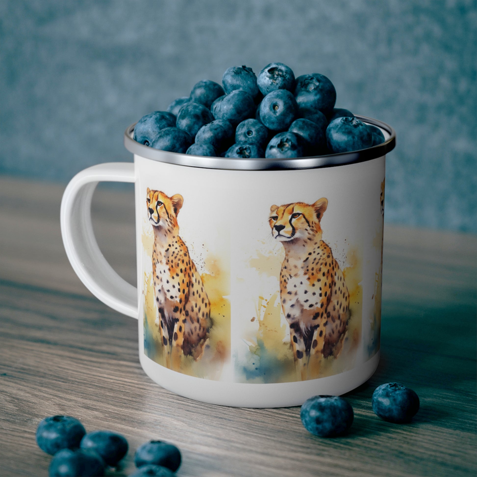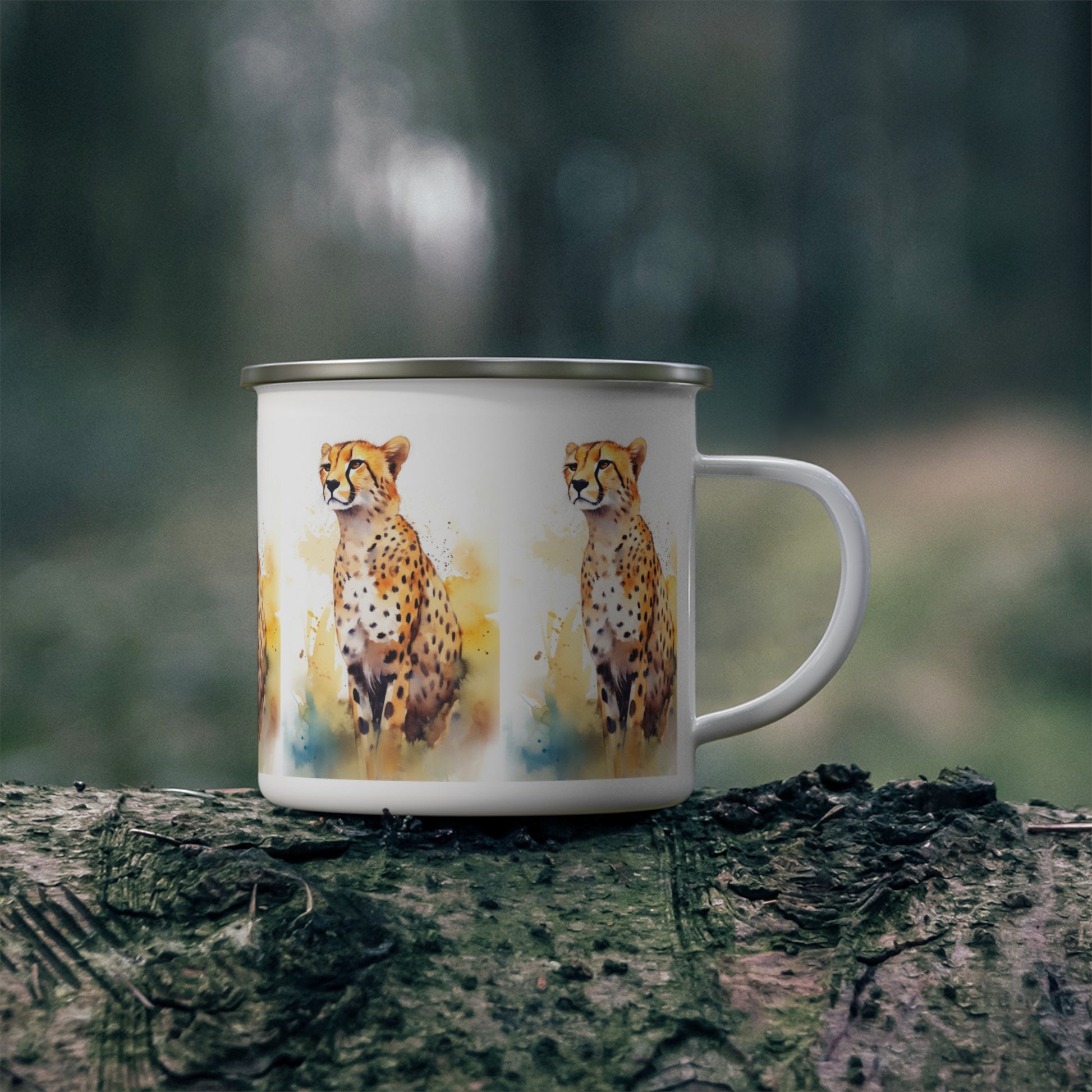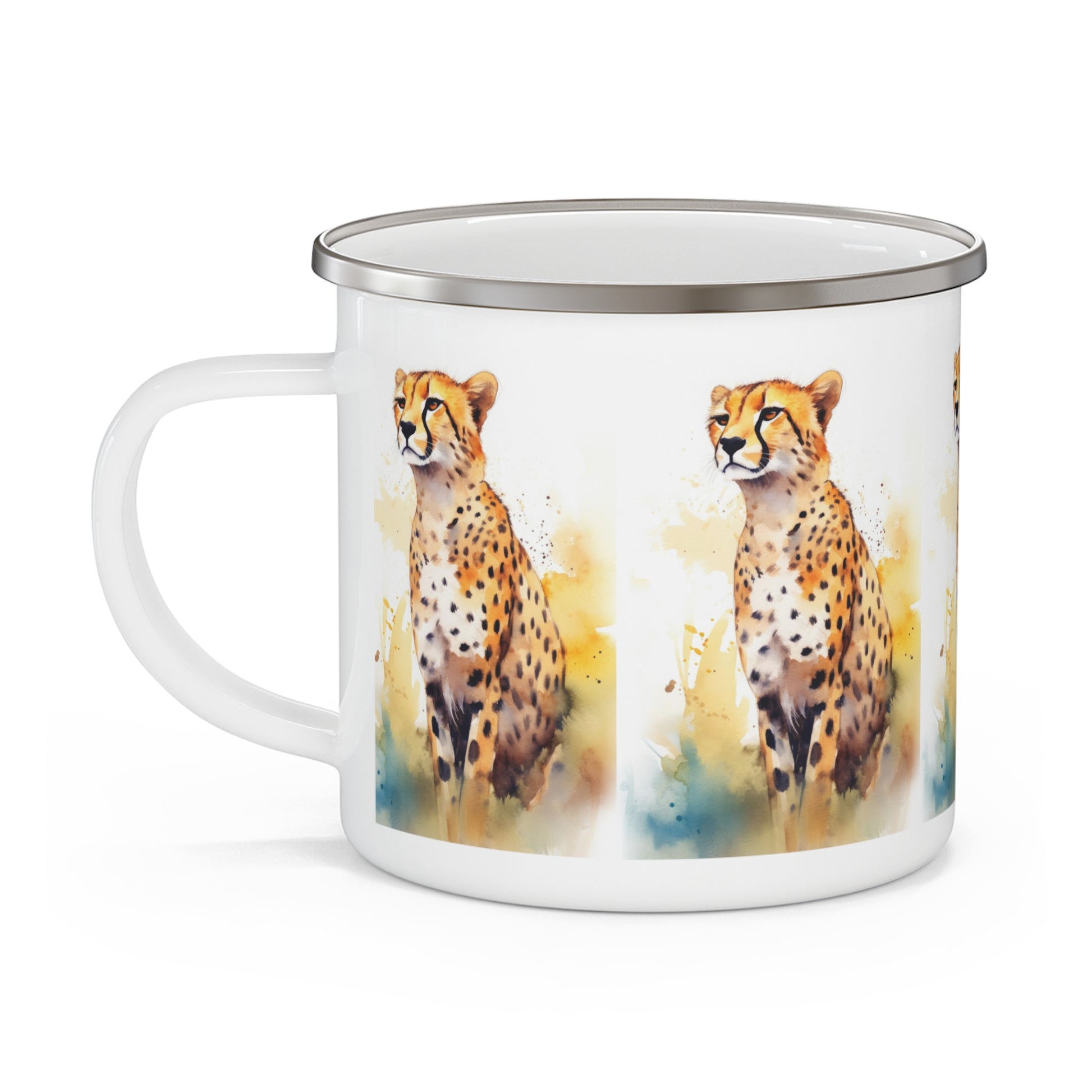 Cheetah Enamel Camping Mug - Durable and Perfect for Outdoor Adventures