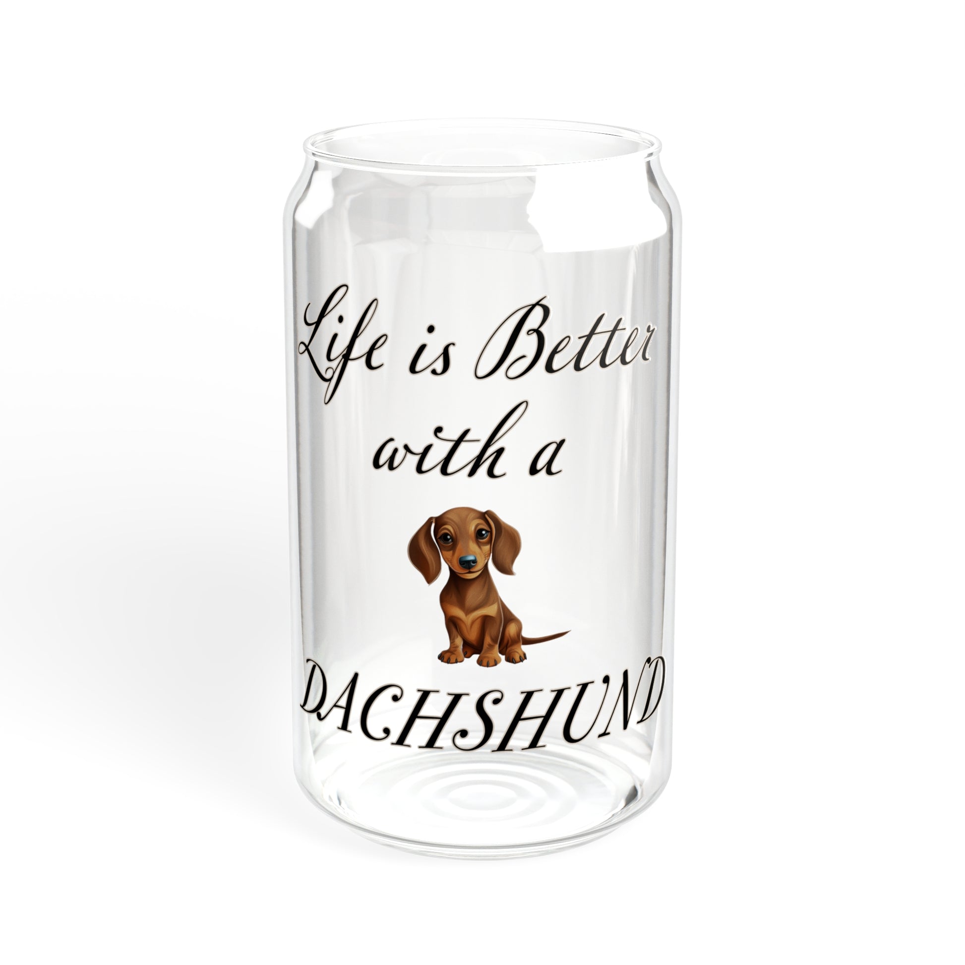 Quench your thirst with the 'Life is Better with a Dachshund' 16oz Sipper Glass, celebrating the playful and endearing character of the Dachshund. This clear tempered glass is sturdy and stylish, ideal for Dachshund aficionados who want to honor the unique charm of these long-bodied companions.
