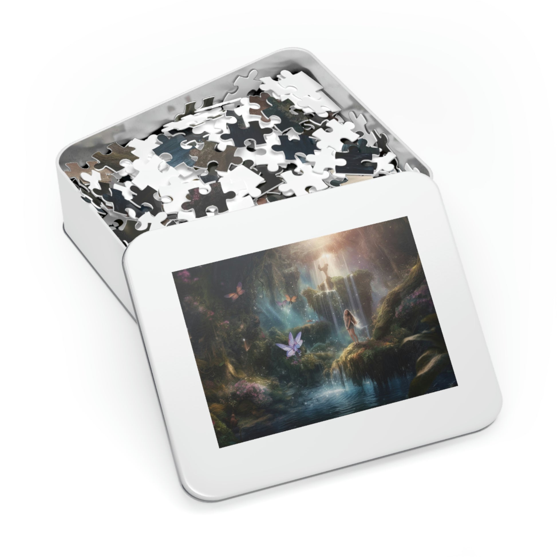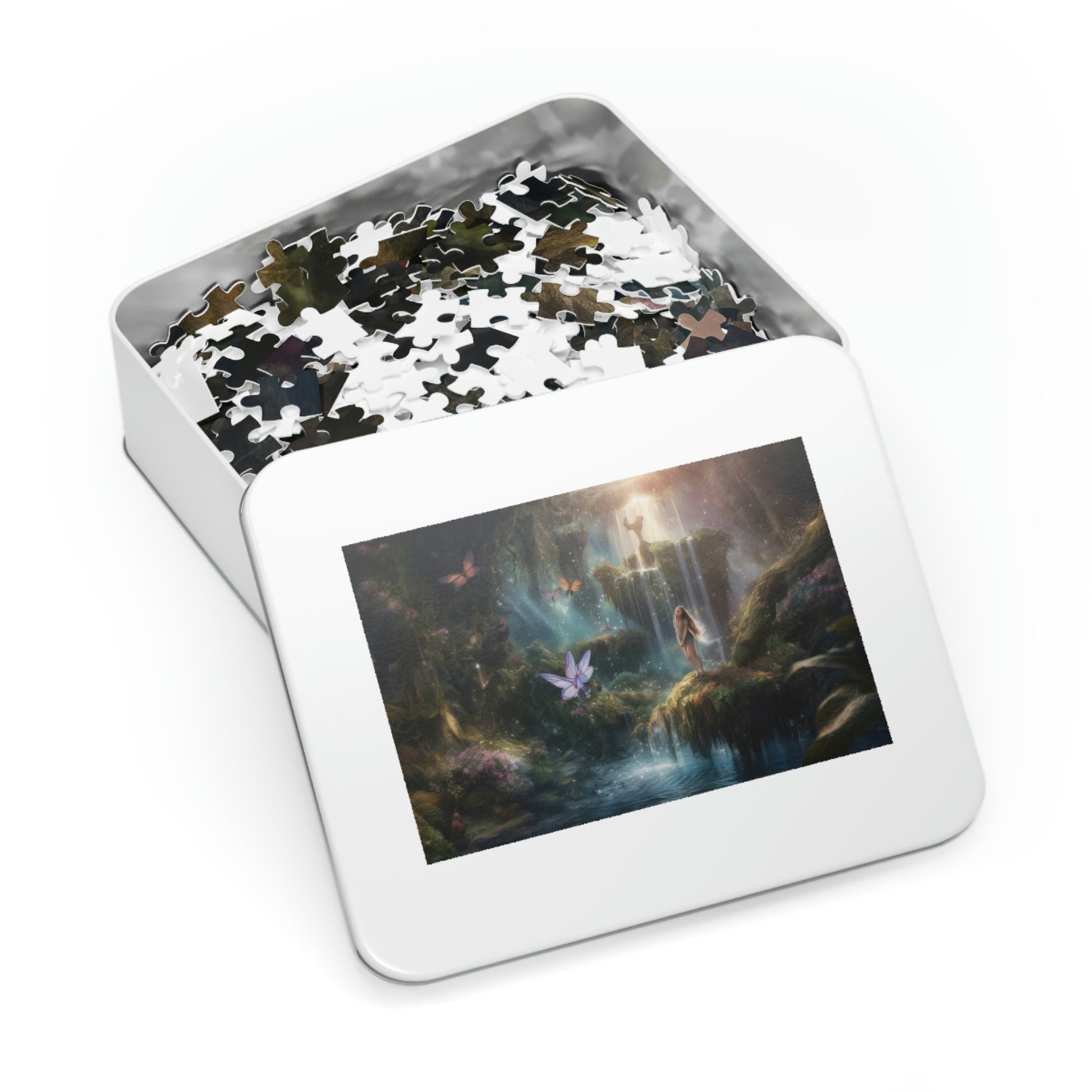 Elegantly packaged in a white metal tin box featuring the finished image on the cover, our Fairy's Whimsical Forest Puzzle is the perfect gift for nature enthusiasts, fairy tale aficionados, and puzzle enthusiasts.
