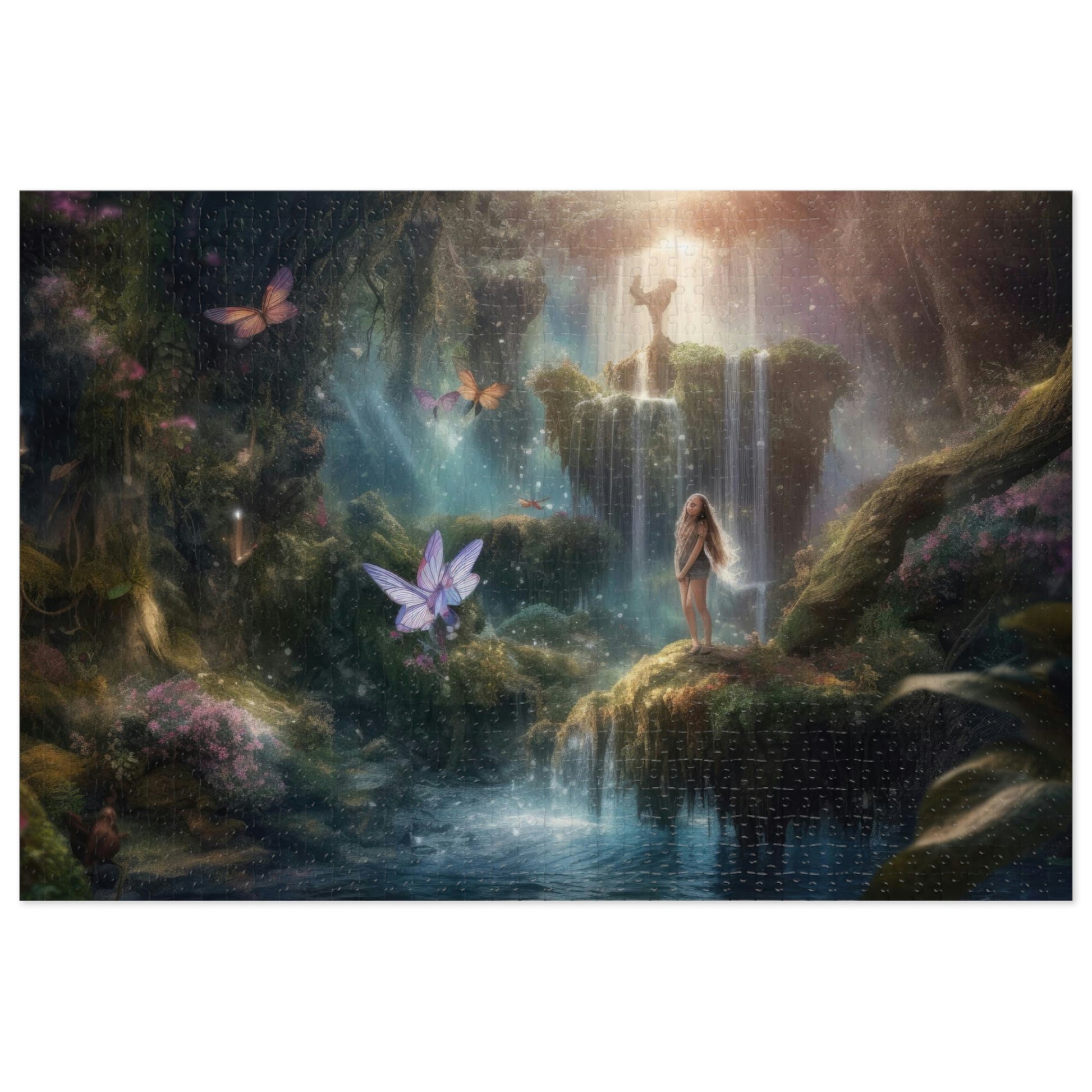 Venture into a realm of fantasy and whimsy with our Fairy's Whimsical Forest Puzzle, featuring a dreamy image of a charming fairy surrounded by magical woodland creatures and a glittering waterfall. Available in 500 and 1000-piece options, this high-quality jigsaw puzzle offers hours of engaging fun for children (ages 9+) and adults. Each puzzle is crafted from durable pre-diecut chipboard with a satin finish, ensuring precise interlocking pieces and a delightful assembly experience.