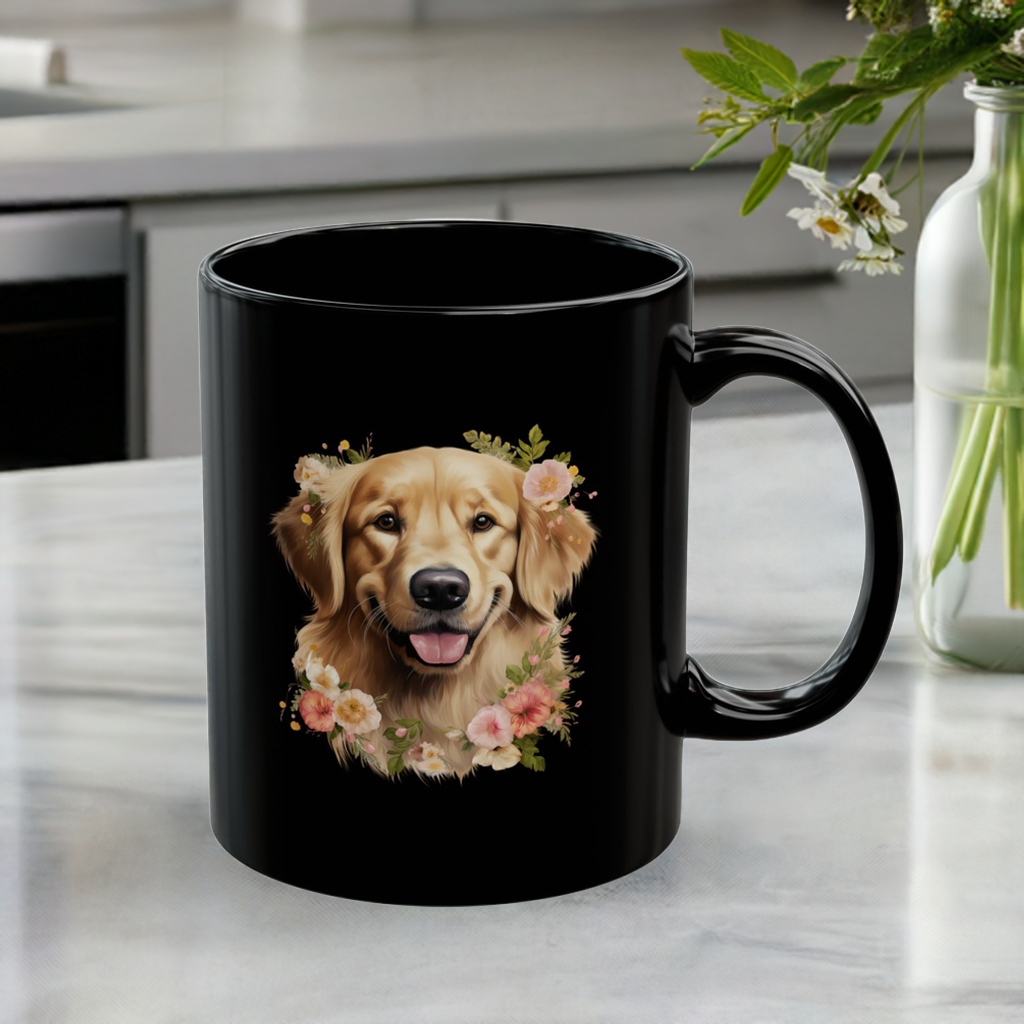 Utilizing advanced sublimation printing technology, the mug maintains the clarity and vibrancy of the Golden Retriever's depiction over many uses, establishing itself as a durable homage to the breed's loving and gentle spirit. It stands as an ideal gift for Golden Retriever lovers or a wonderful addition to your own collection of mugs, infusing every sip with the affectionate and joyful energy of Golden Retrievers.