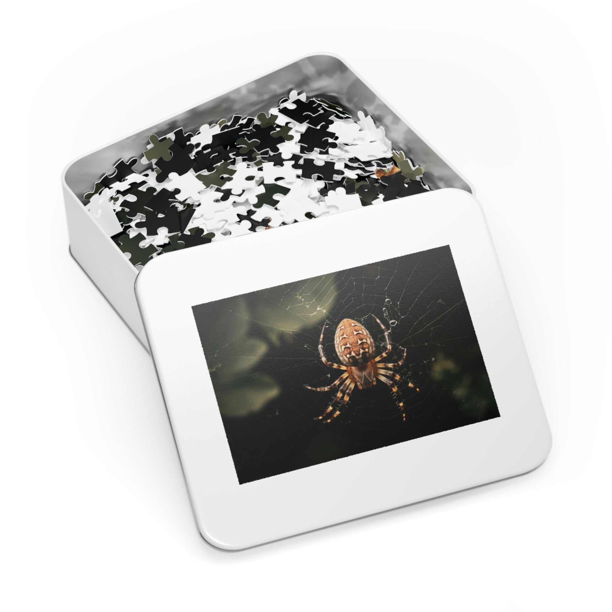 Elegantly packaged in a white metal tin box adorned with the completed image on the cover, our Spider in a Web Puzzle is a captivating gift for nature enthusiasts, arachnid admirers, and puzzle lovers alike. As you piece together this fascinating scene, you'll gain a new appreciation for the intricate artistry of the spider's web and the delicate balance of life in the natural world.
