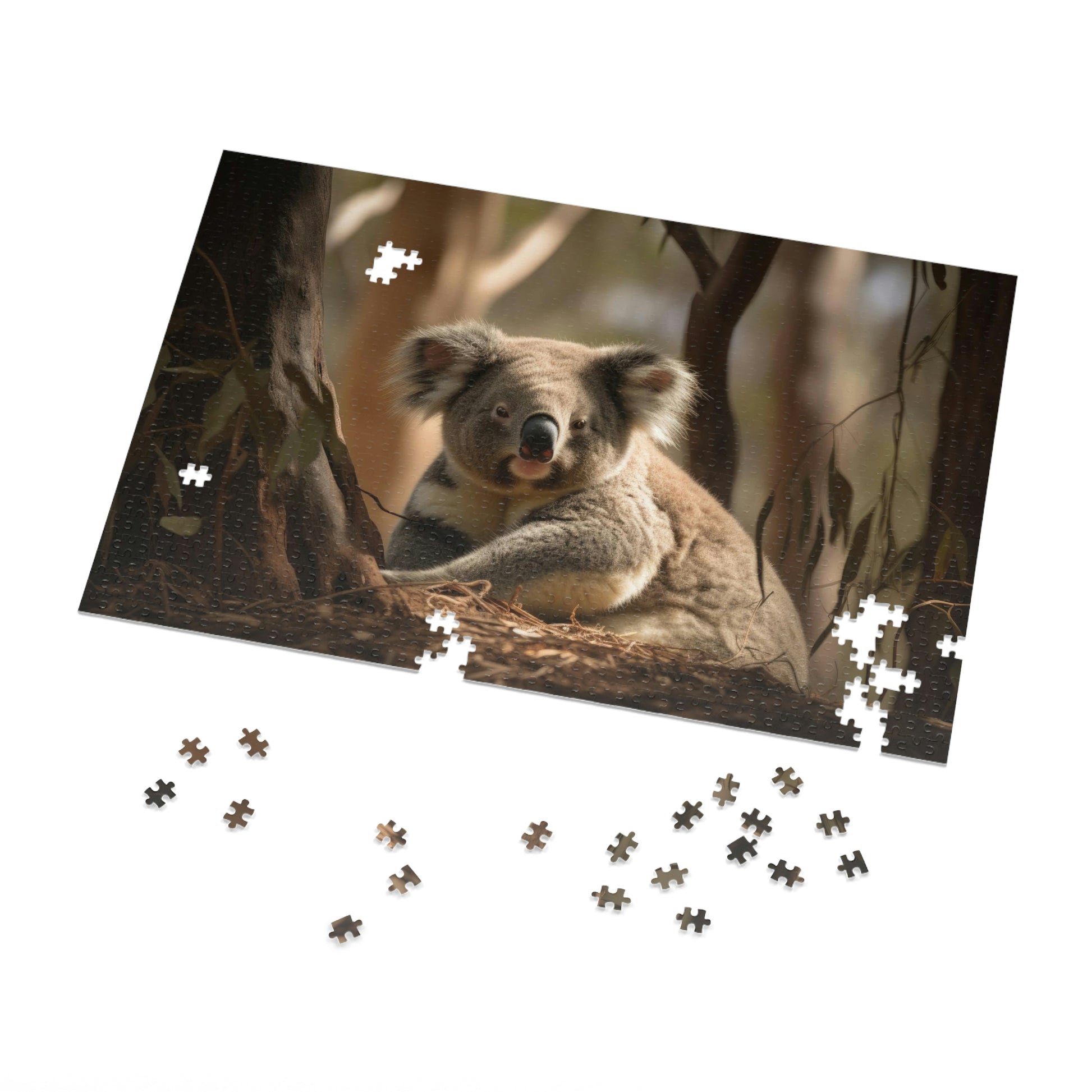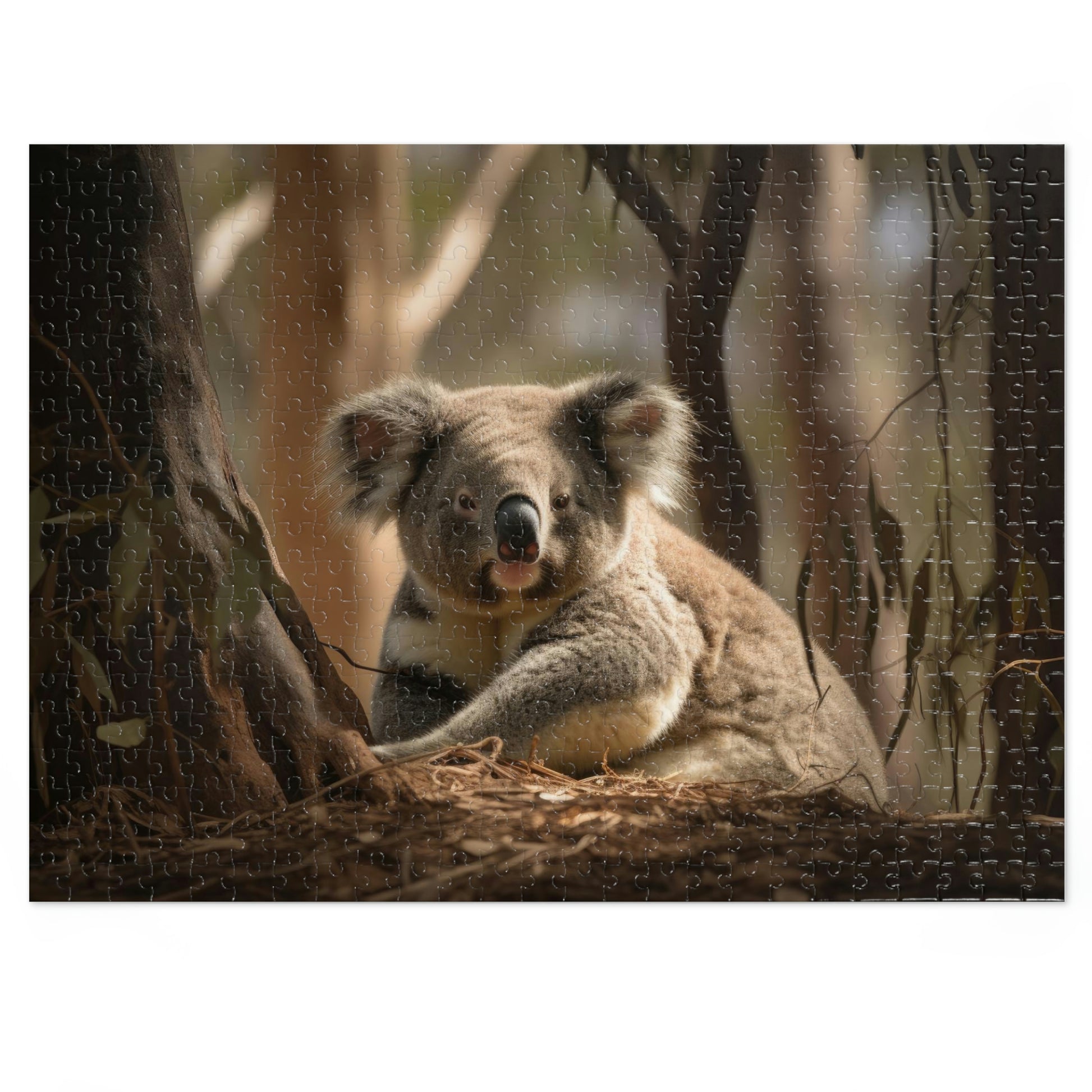 Discover the peaceful world of koalas with our fourth Koala's Tranquil Siesta Puzzle, featuring a soothing image of a contented koala enjoying a well-deserved rest among the eucalyptus trees. Available in 500 and 1000-piece options, this high-quality jigsaw puzzle offers hours of engaging fun for children (ages 9+) and adults. Each puzzle is crafted from durable pre-diecut chipboard with a satin finish, ensuring precise interlocking pieces and a delightful assembly experience.