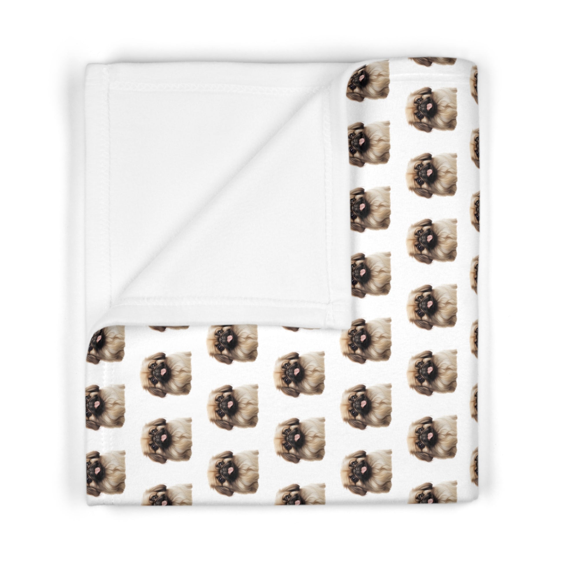 Charming Design: Featuring a one-sided print of an adorable Pekingese, this blanket adds a touch of regal charm to your baby's bedding.
