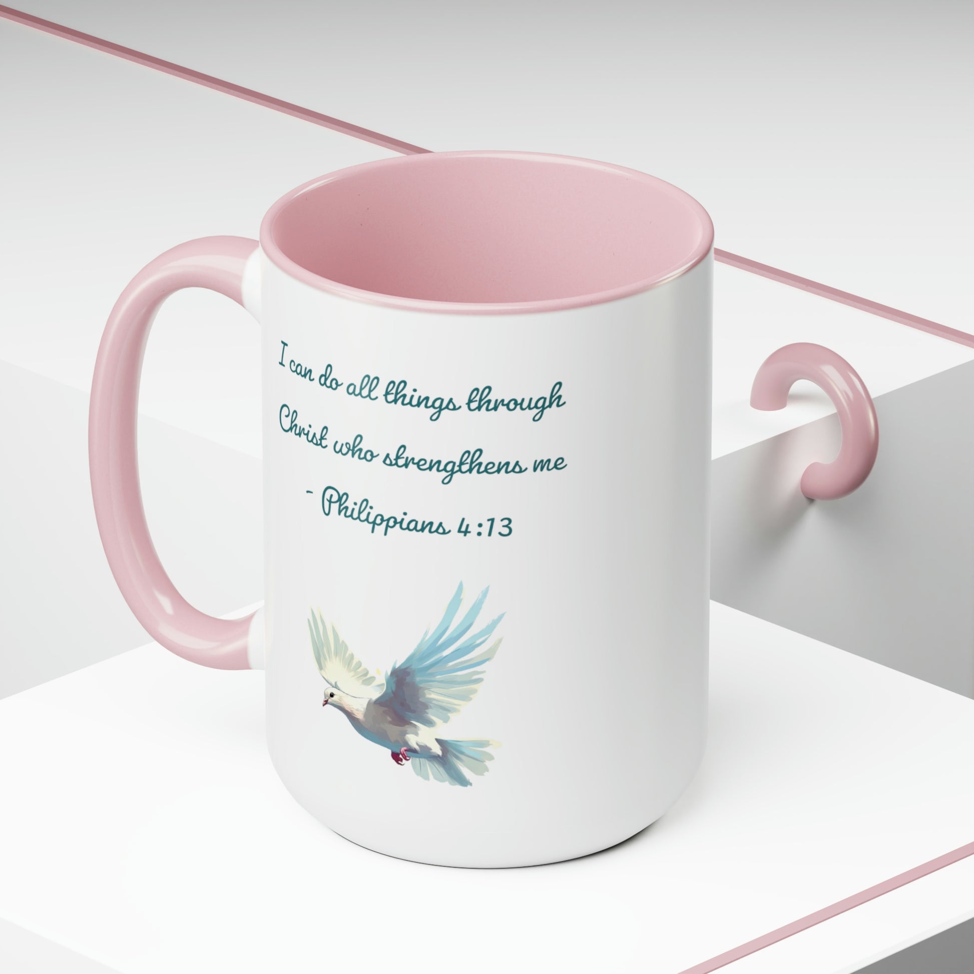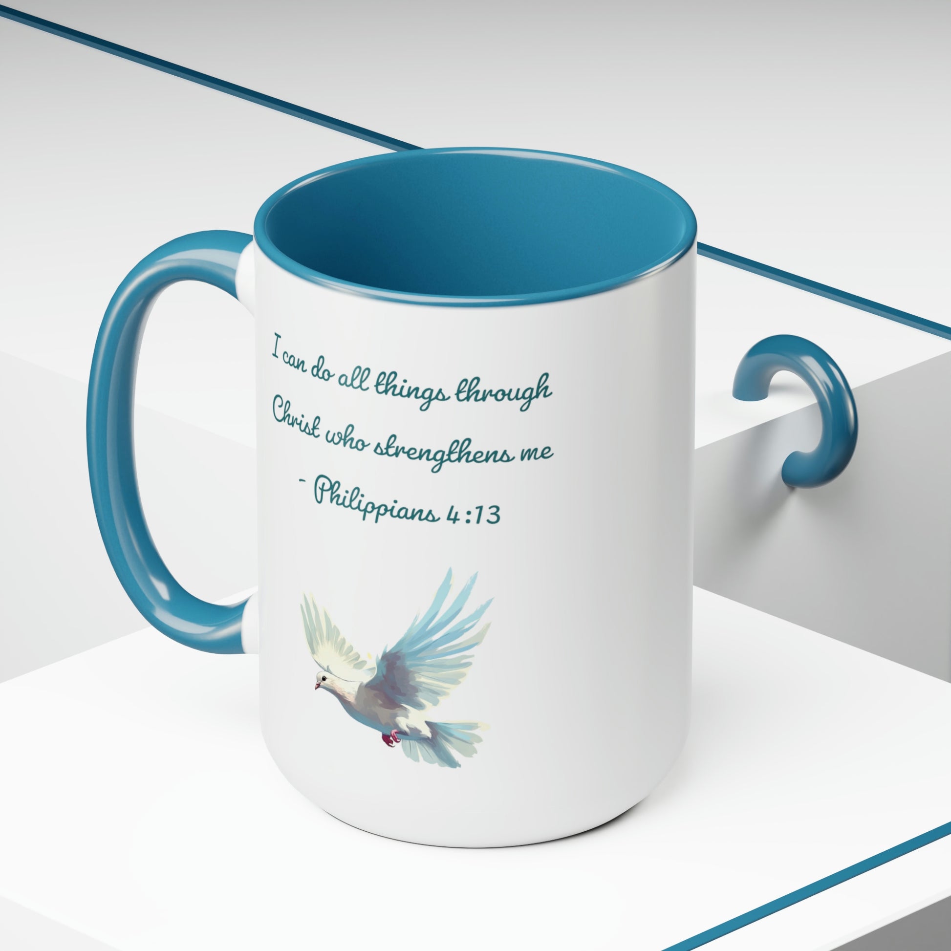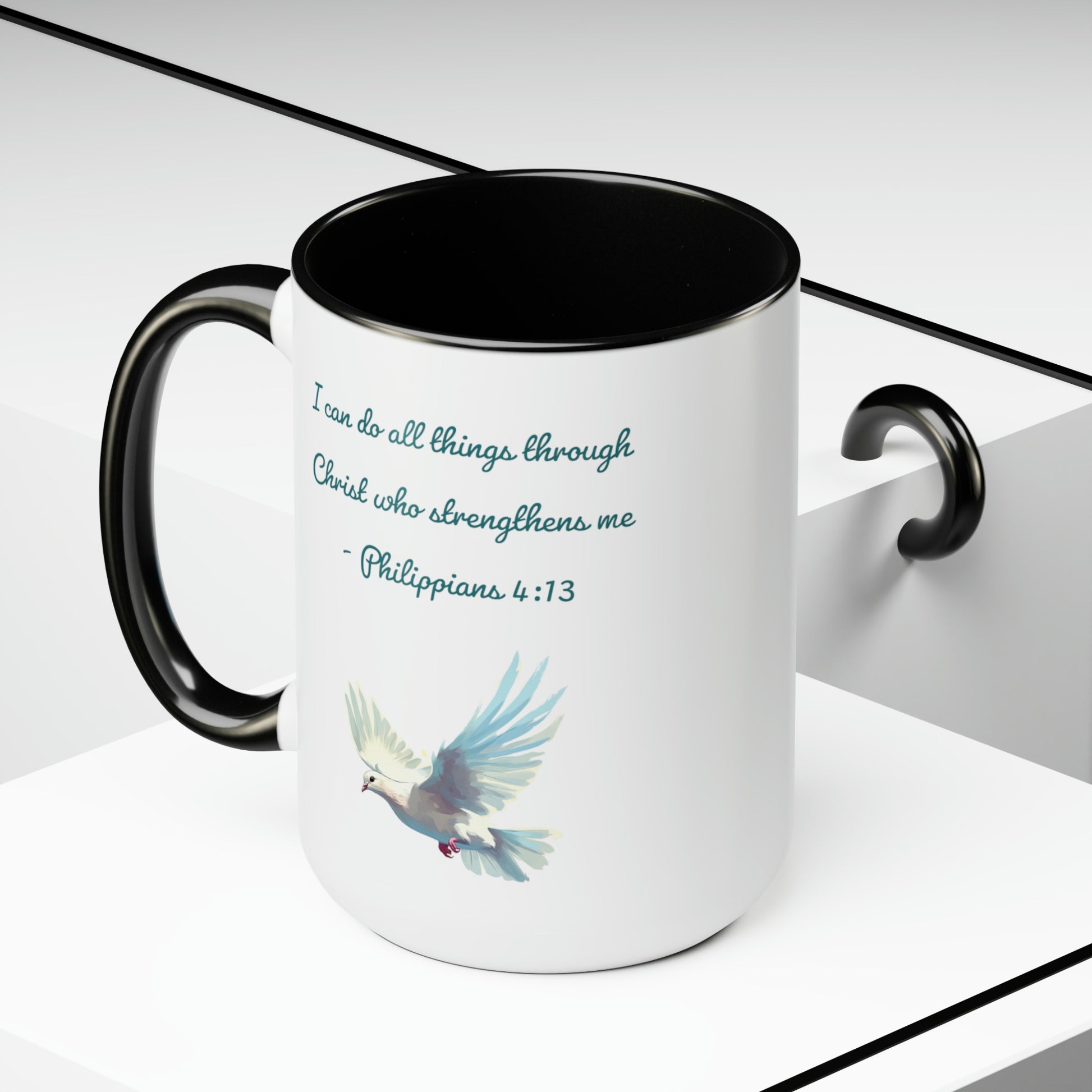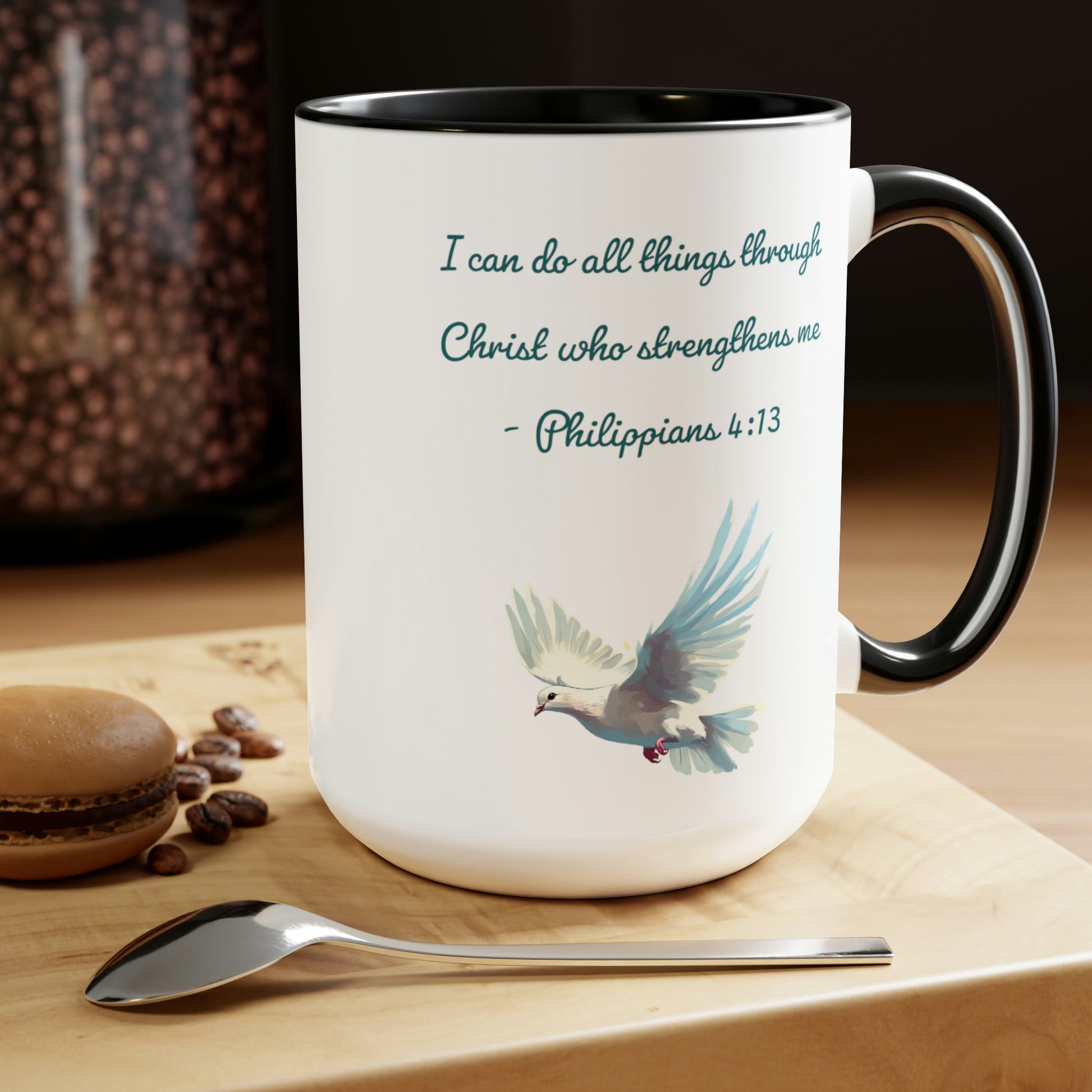Our Two-Tone Philippians 4:13 Coffee Mug offers: