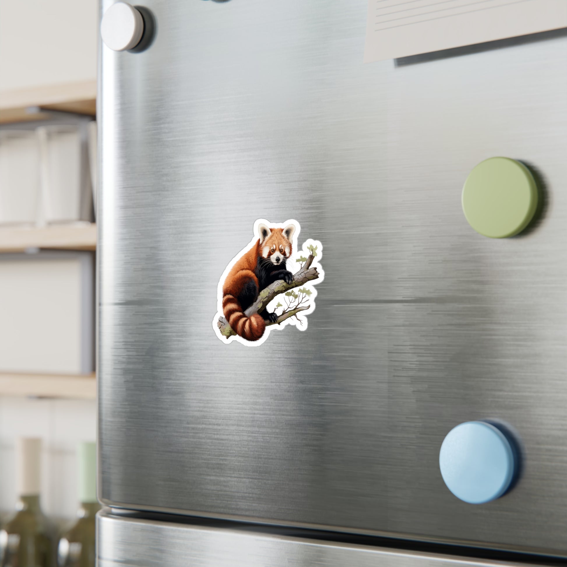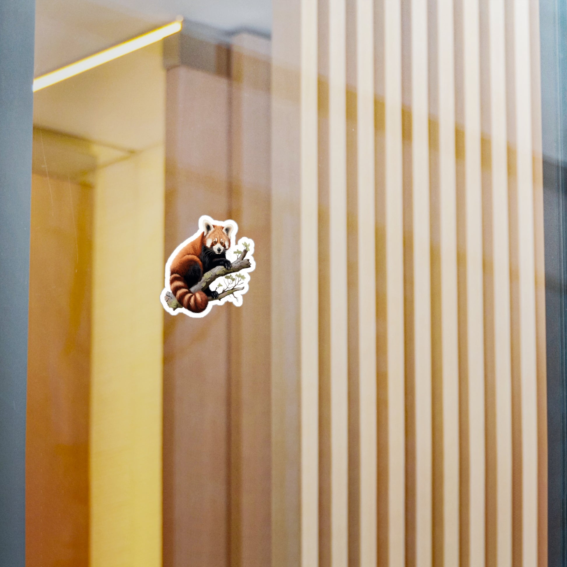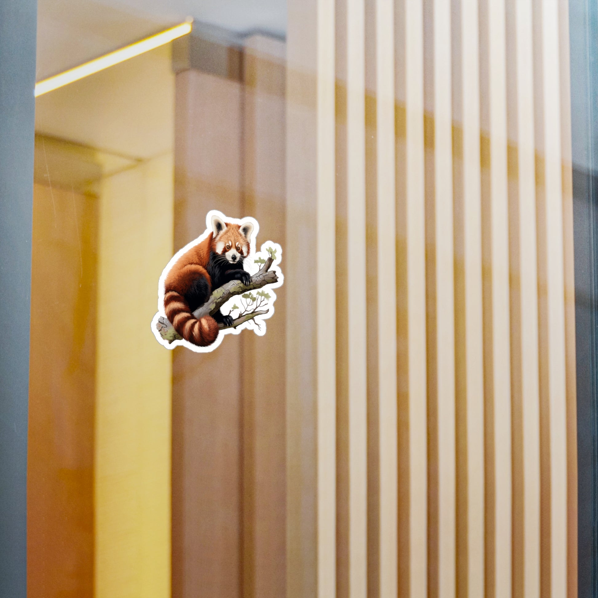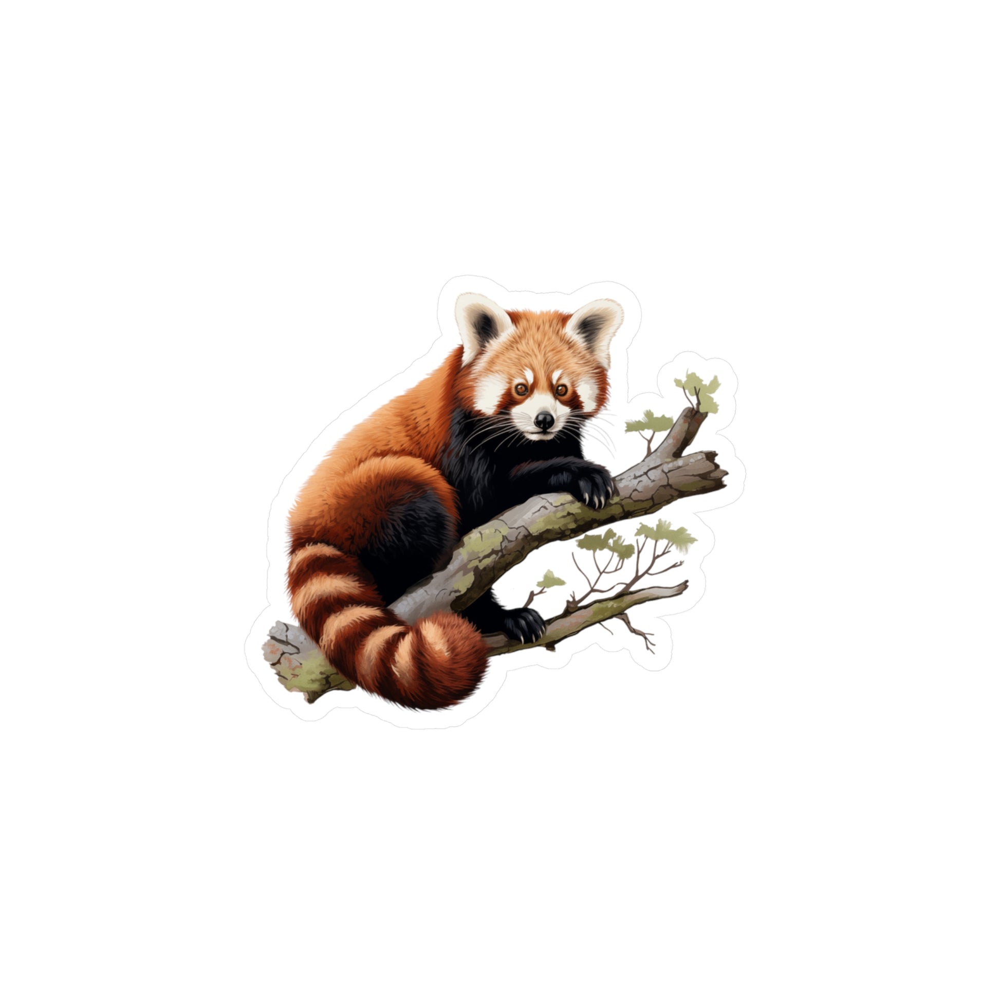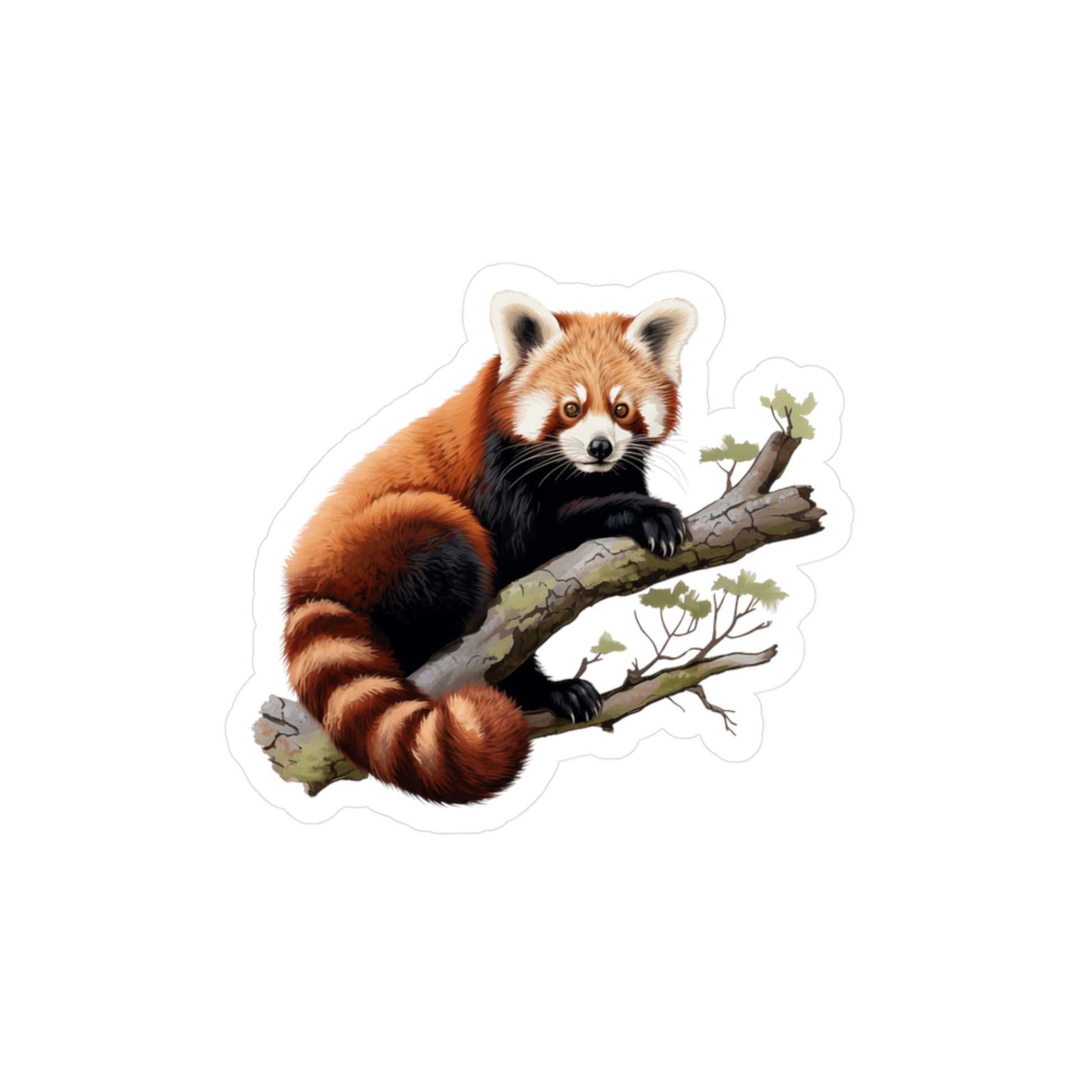 Vibrant Design: Featuring a colorful and detailed illustration of a red panda in its natural habitat, this sticker is sure to catch the eye and warm the heart. The vivid colors and expressive face of the red panda make it a delightful addition to any surface.
