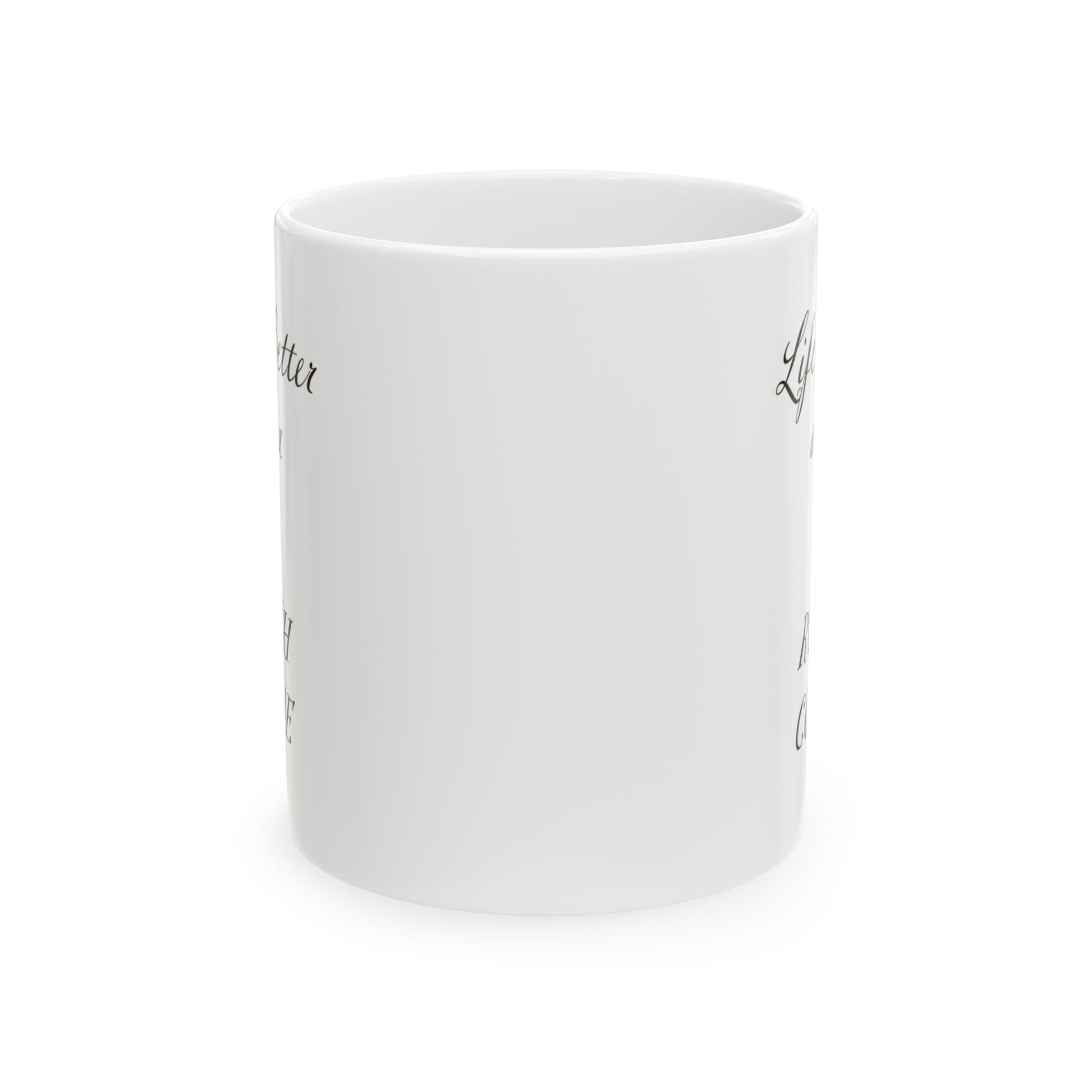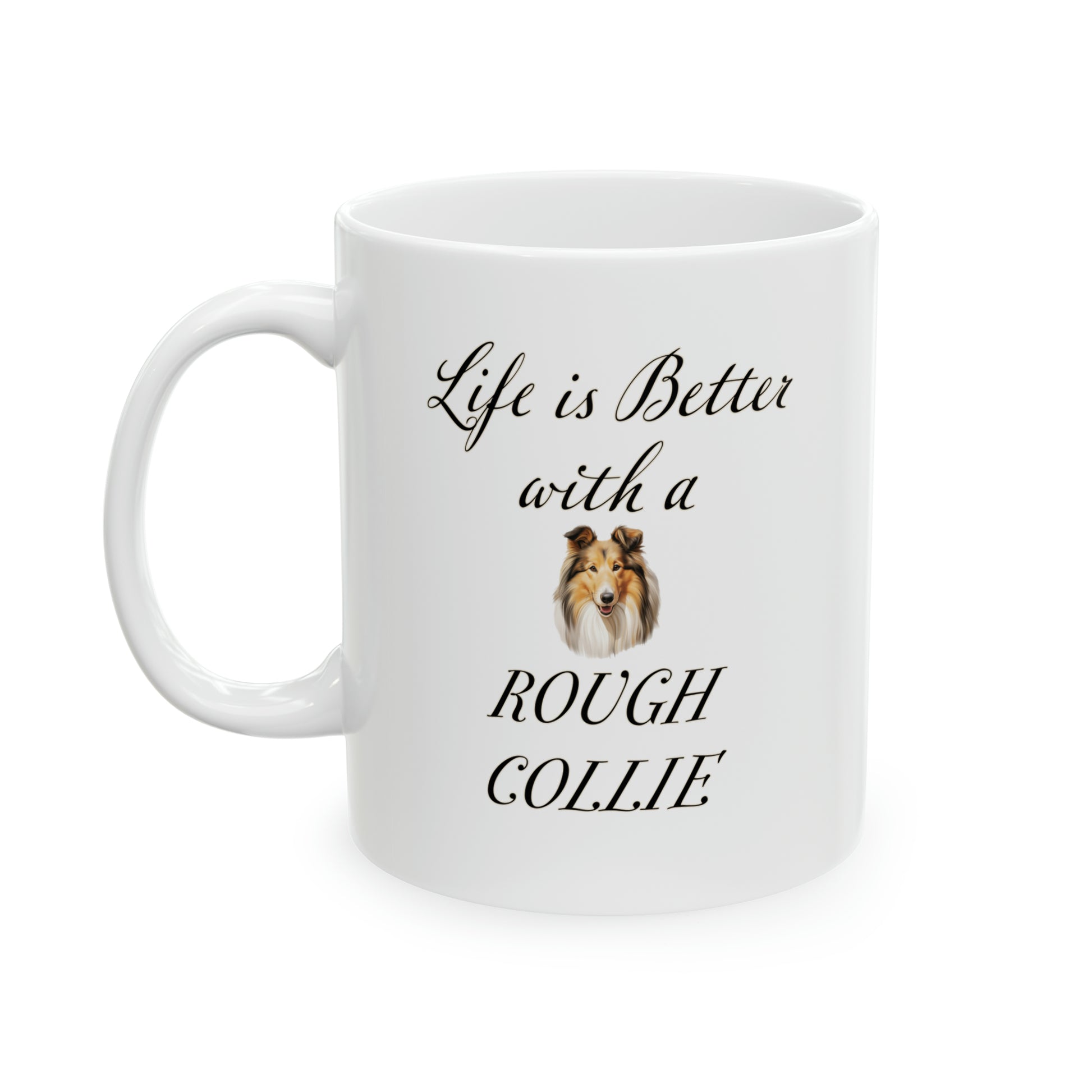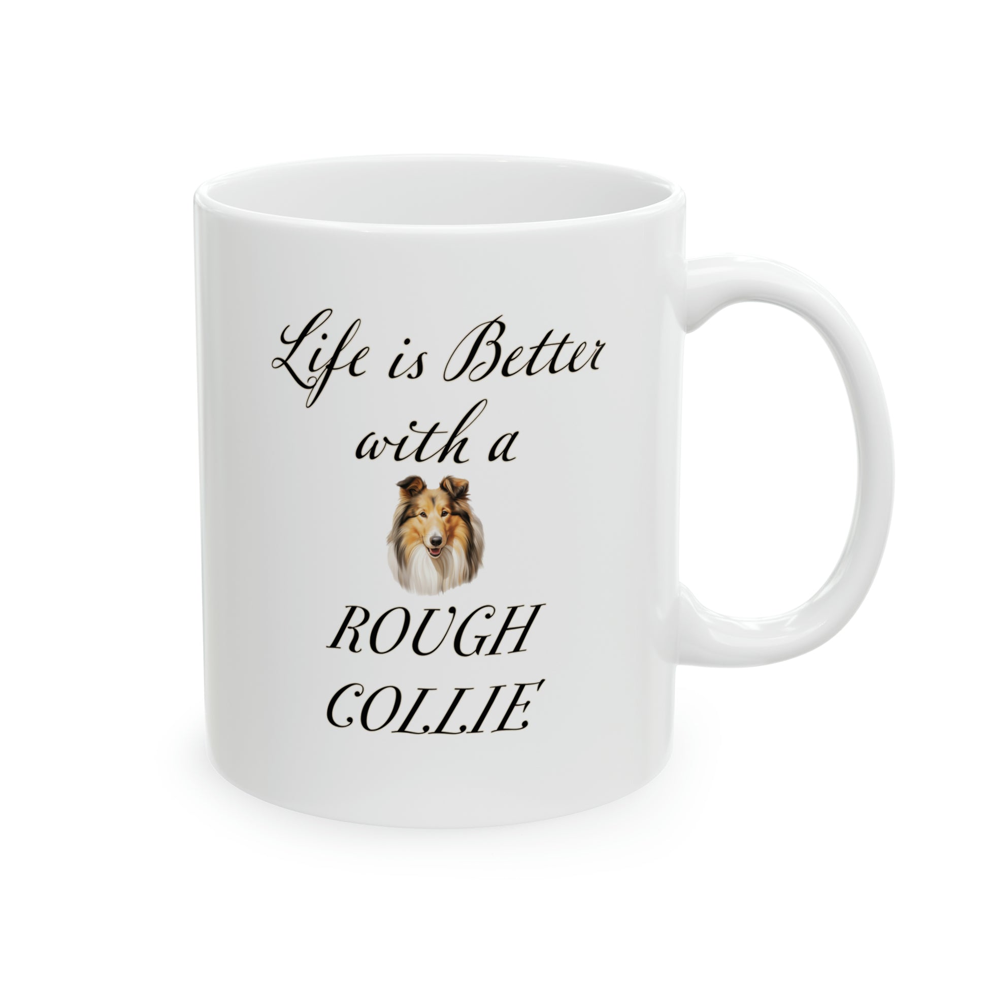 Carefully crafted, the message 'Life is Better with a Rough Collie' is printed using high-quality ink on the mug, ensuring that the sentiment and vibrant imagery are displayed with stunning clarity and color. Made from durable ceramic, this 11 oz mug is perfect for enjoying your favorite hot beverages, whether it's your morning coffee or evening tea.