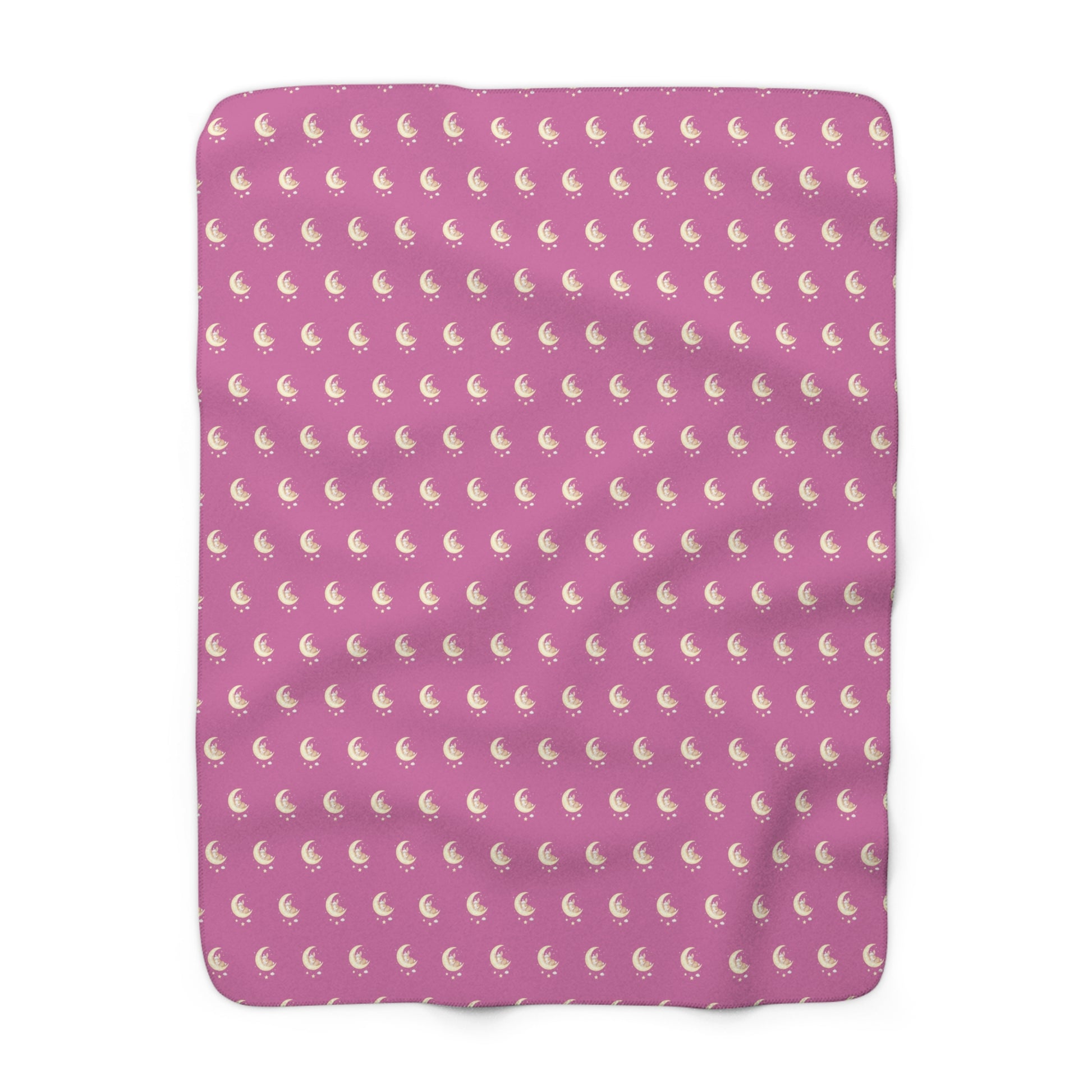A cozy sherpa fleece blanket featuring a cute bunny sleeping on the moon design. Perfect for adding a touch of whimsy and warmth to your living space. Ideal for adults looking to stay comfortable during chilly nights or lazy days. Great for gifting on birthdays, holidays, or as a housewarming present.