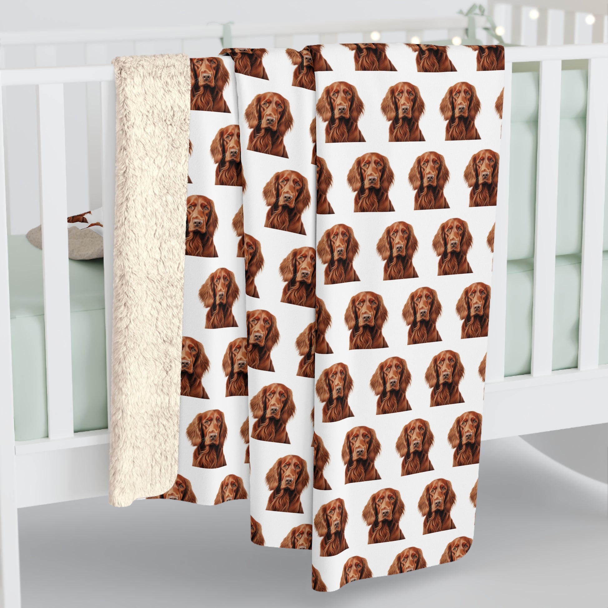 Sherpa Fleece Blanket - Irish Setter Design, Dog Lover Gift, Cozy Winter Blanket, Pet Owner Present, St. Patrick's Day Decor
