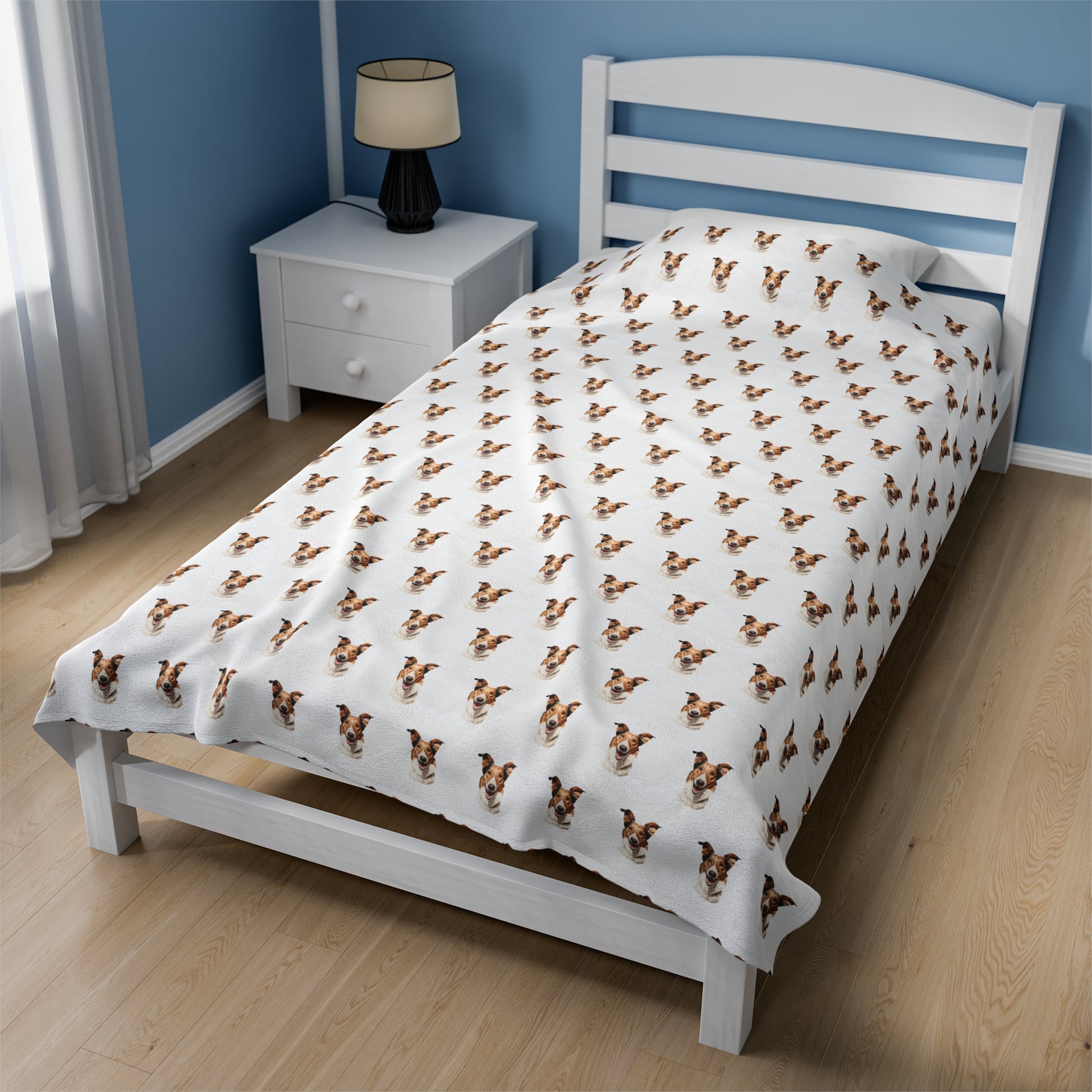 Wrap yourself in the timeless elegance and warmth of our Smooth Collie Print Plush Velveteen Blanket. Luxuriously soft and inviting, this blanket brings together comfort and personalized style to elevate your space.