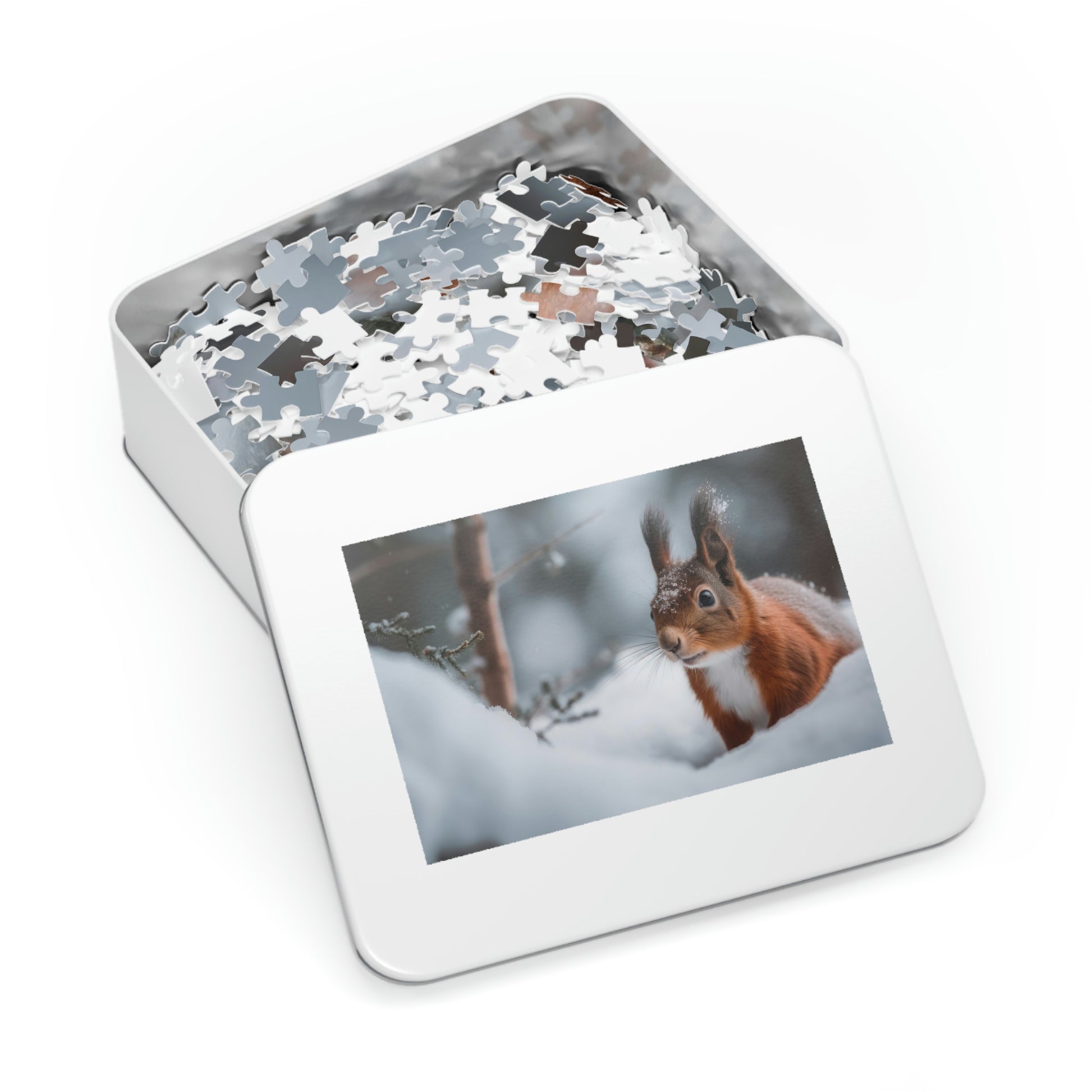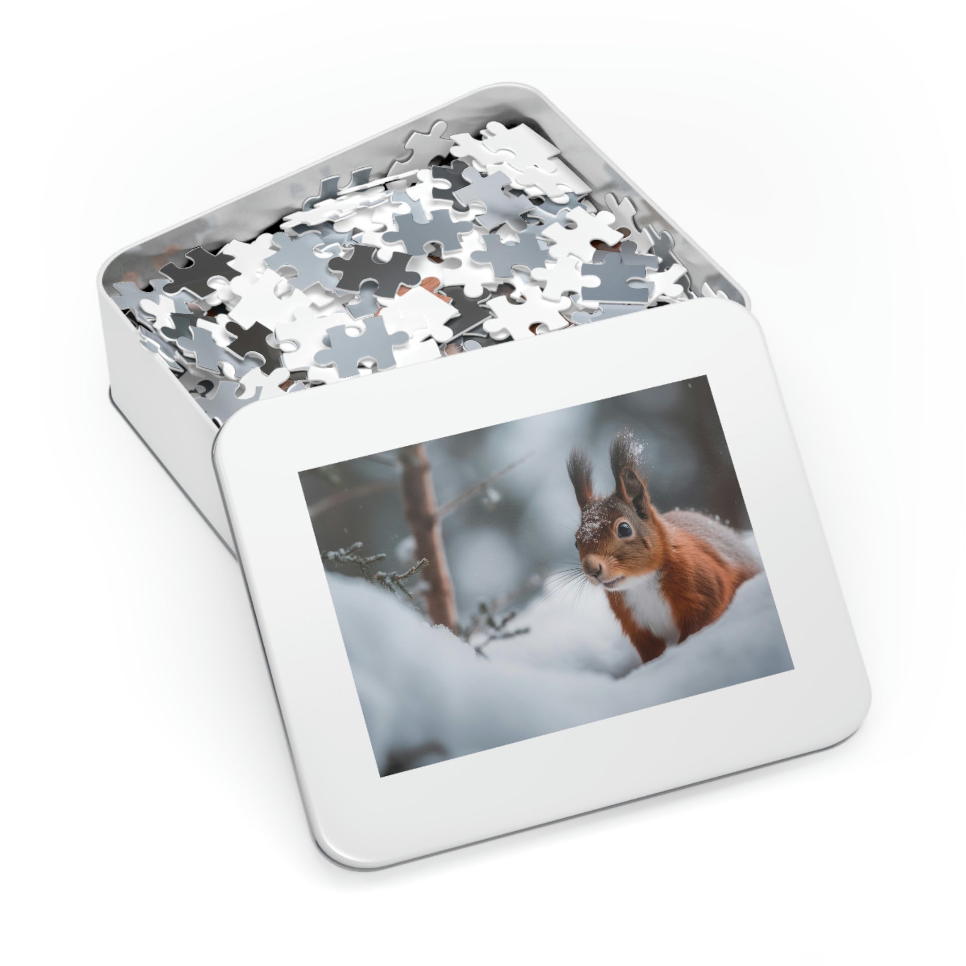 Elegantly packaged in a white metal tin box featuring the finished image on the cover, our Squirrel's Winter Wonderland Puzzle is the perfect gift for winter enthusiasts, animal lovers, and puzzle aficionados.