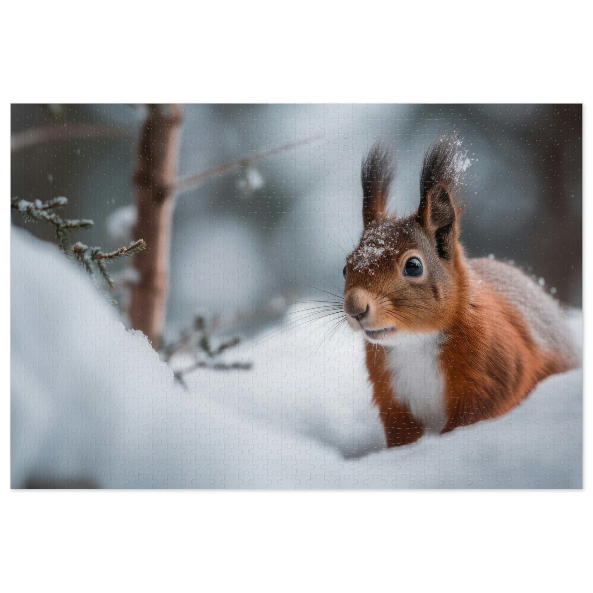 Experience the enchantment of winter with our first Squirrel's Winter Wonderland Puzzle, featuring a charming image of a curious squirrel exploring a pristine, snow-covered landscape. Available in 500 and 1000-piece options, this high-quality jigsaw puzzle offers hours of engaging fun for children (ages 9+) and adults. Each puzzle is crafted from durable pre-diecut chipboard with a satin finish, ensuring precise interlocking pieces and a delightful assembly experience.