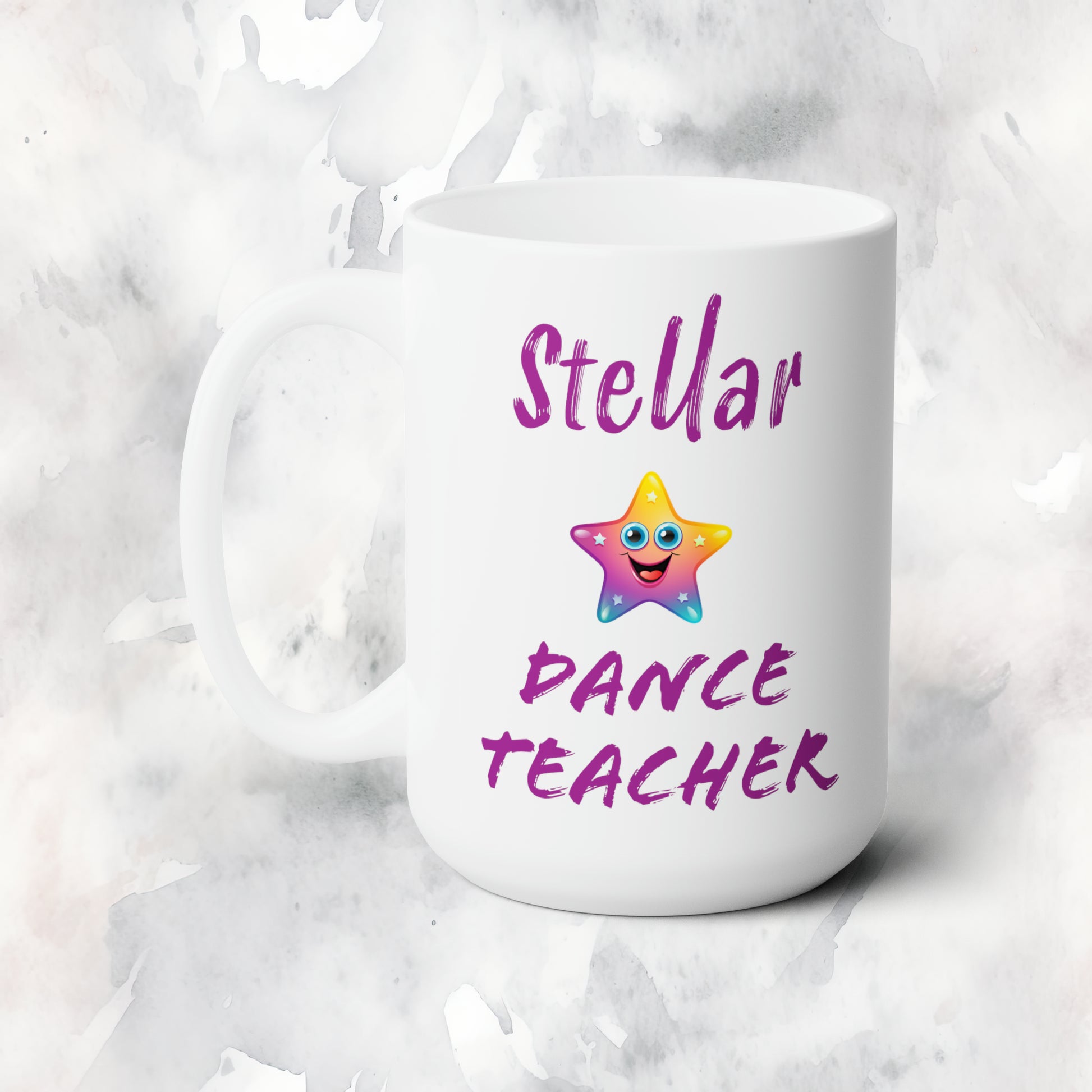 With a sturdy handle for a comfortable grip and a high-quality print that withstands both microwave and dishwasher use, this mug combines practicality with sentimentality. It’s a lasting tribute to the beautiful impact of a dance teacher's dedication. Celebrate the art of dance and the people who teach it with our "Stellar Dance Teacher" 15 oz white ceramic mug. After all, every dance teacher deserves to know they're a star!