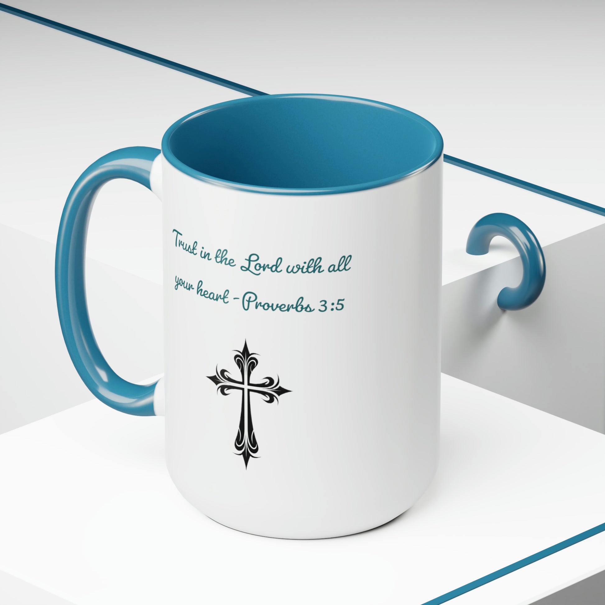 Trust in the Lord, Proverbs 3:5, Two-Tone Coffee Mugs, 15oz