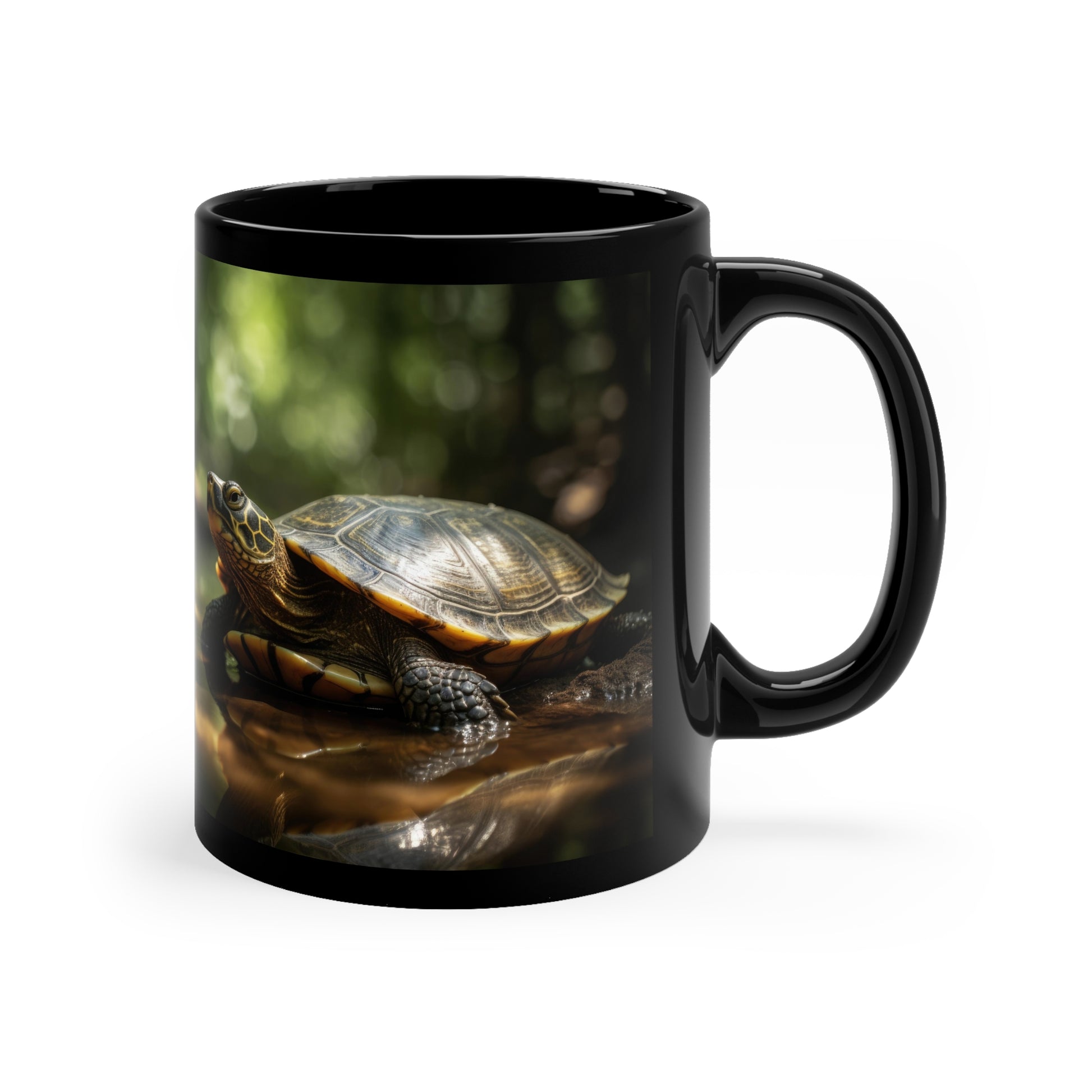 Step into the peaceful world of turtles with our beautiful, ceramic black turtle mug. This 11 oz mug, perfect for your morning coffee or afternoon tea, features an intricate turtle design that is sure to be a conversation starter.