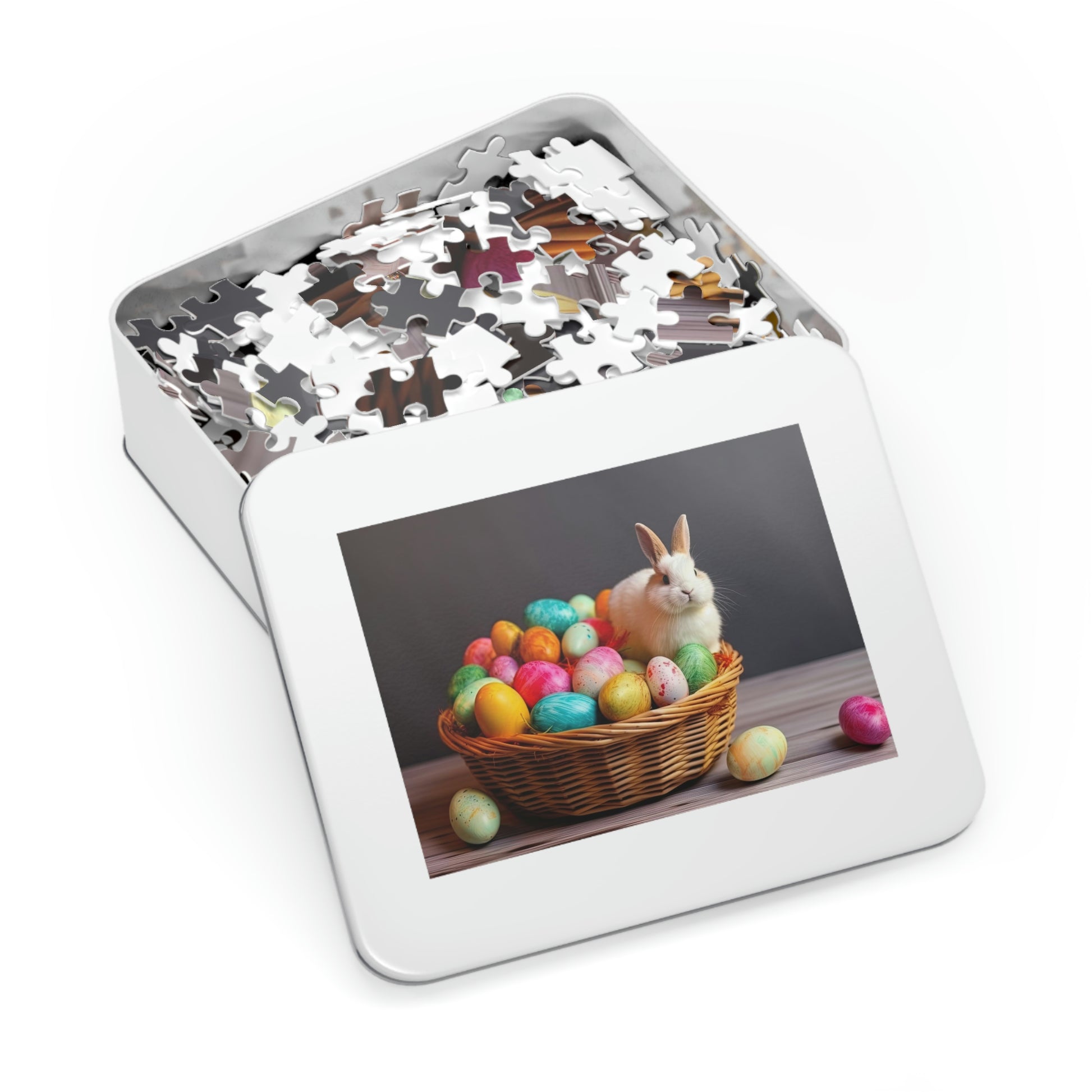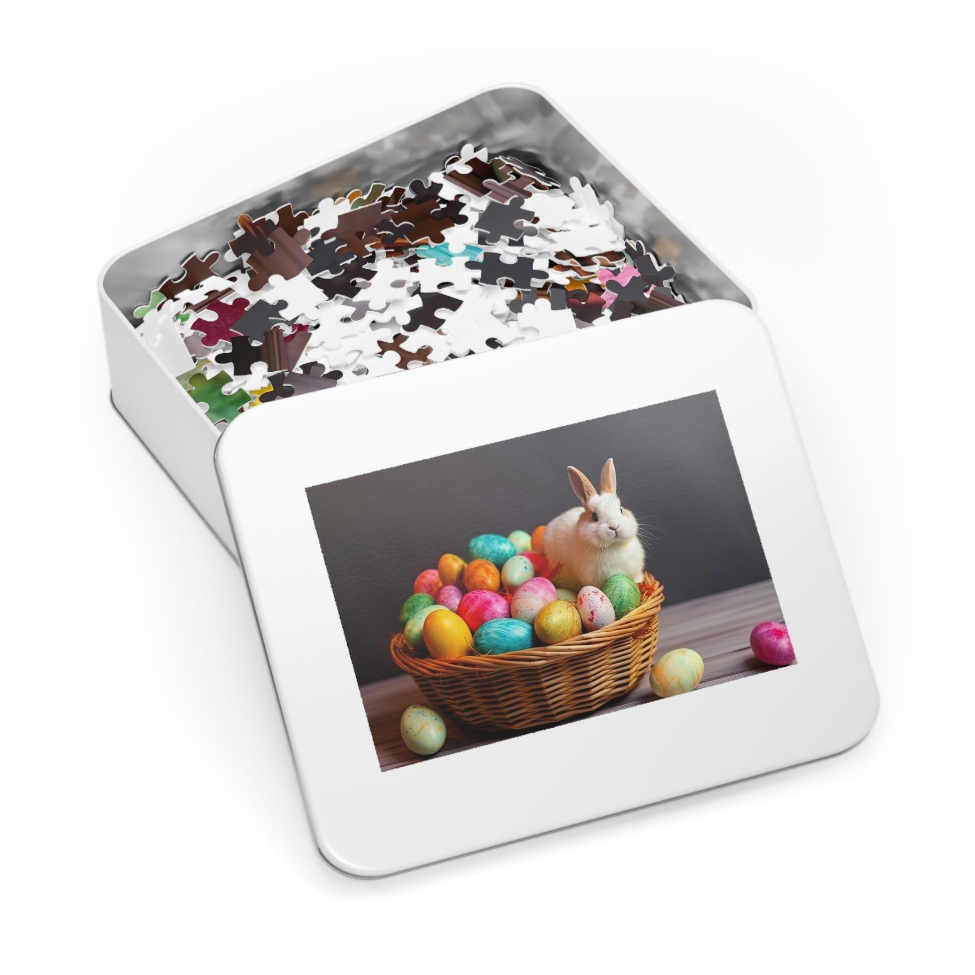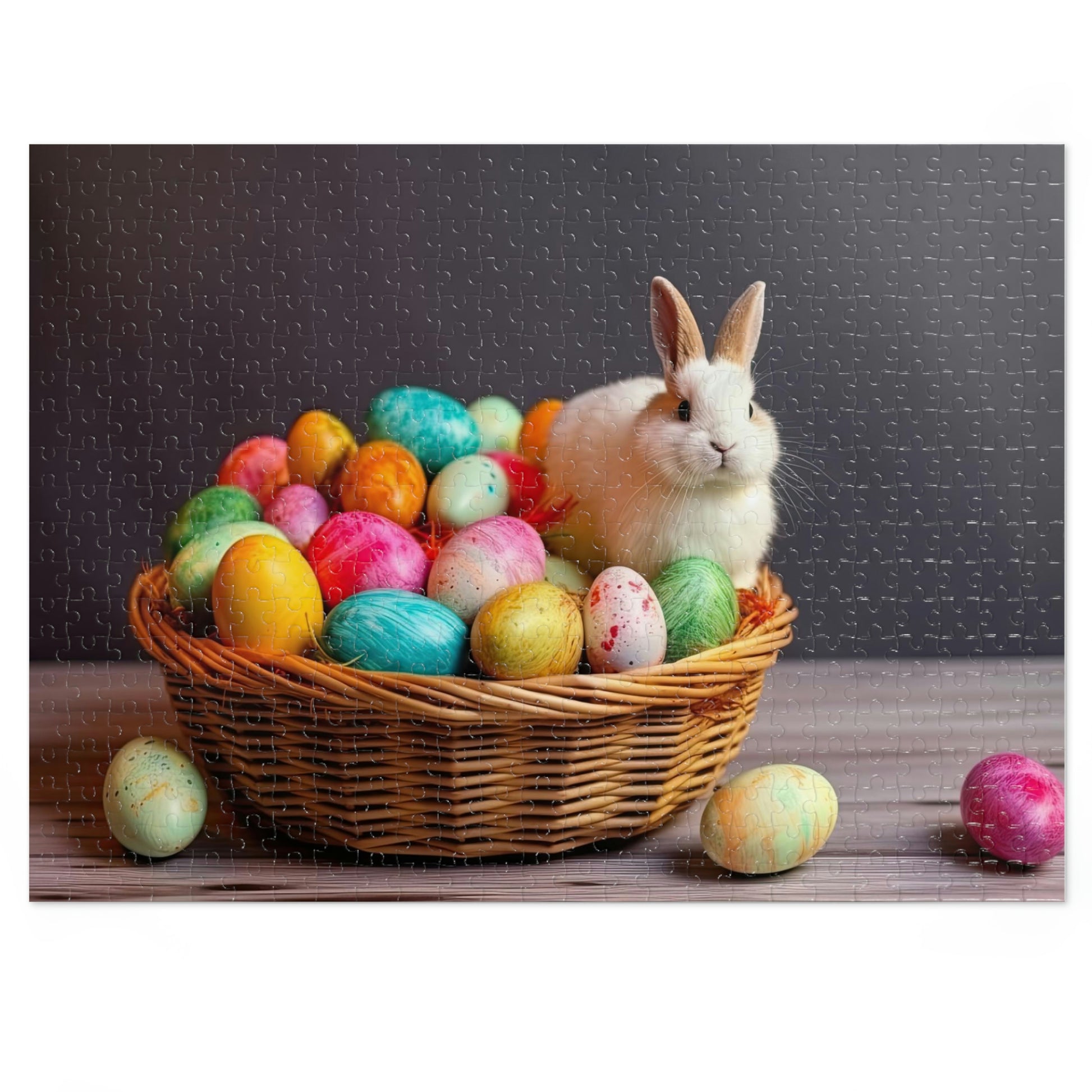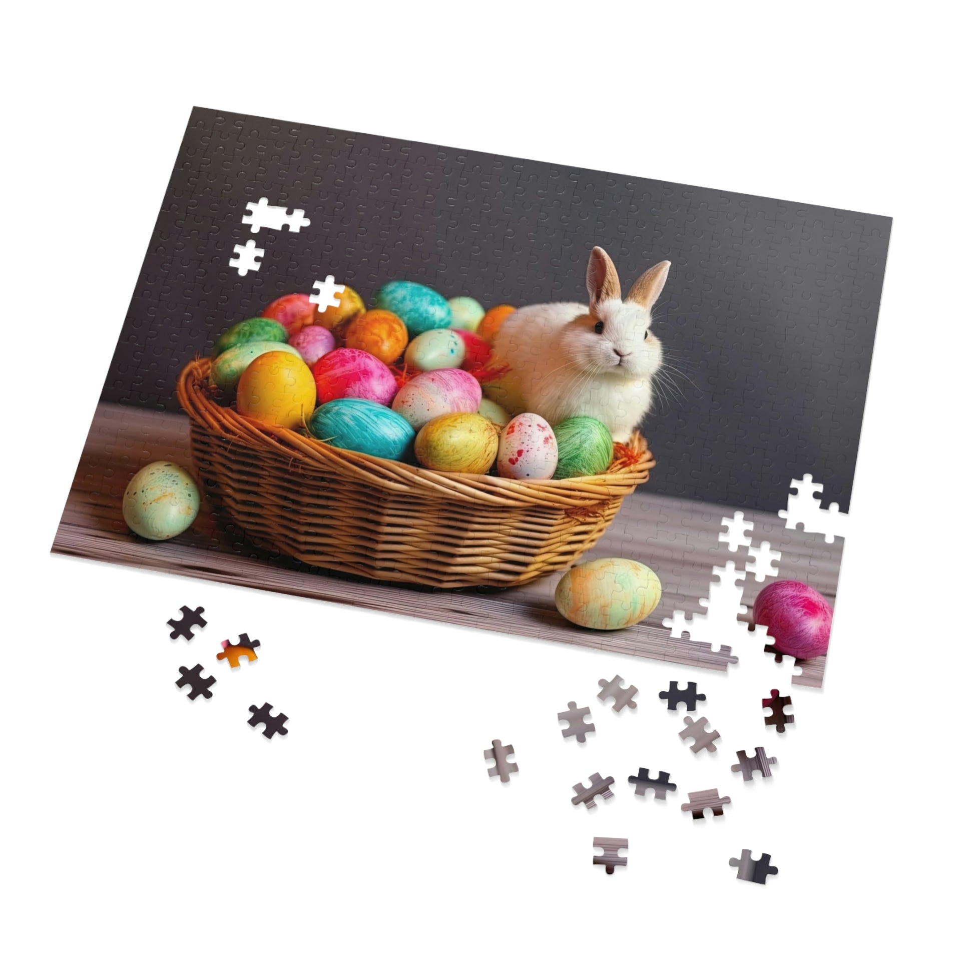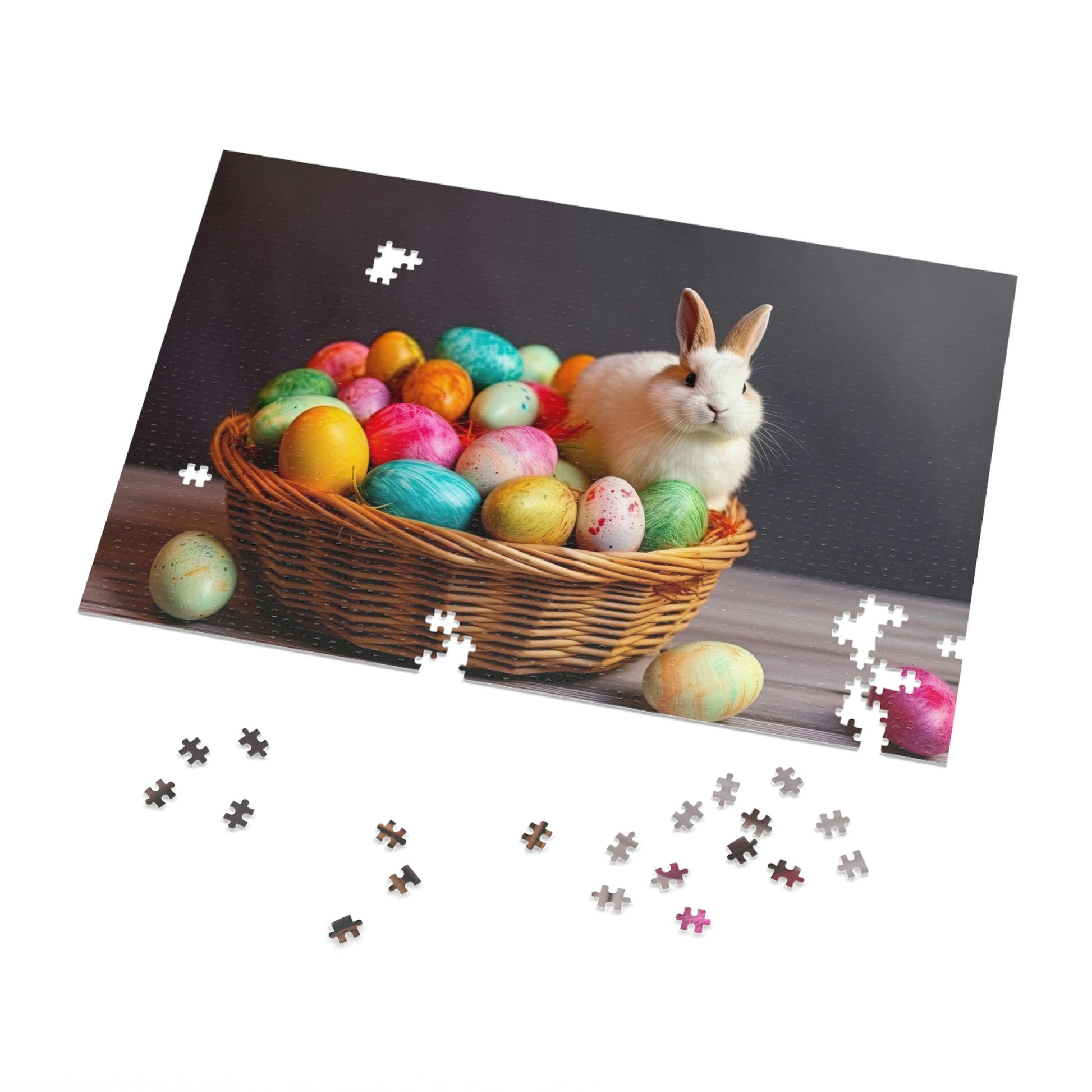 Celebrate the joy of the season with our Whimsical Easter Bunny 2 Puzzle, featuring an adorable image of a fluffy Easter bunny nestled in a charming wicker basket, surrounded by colorful eggs and blossoming spring flowers. Available in 500 and 1000-piece options, this high-quality jigsaw puzzle provides hours of delightful entertainment for children (ages 9+) and adults. Each puzzle is crafted from durable pre-diecut chipboard with a satin finish, ensuring precise interlocking pieces and an enjoyable assembly experience.