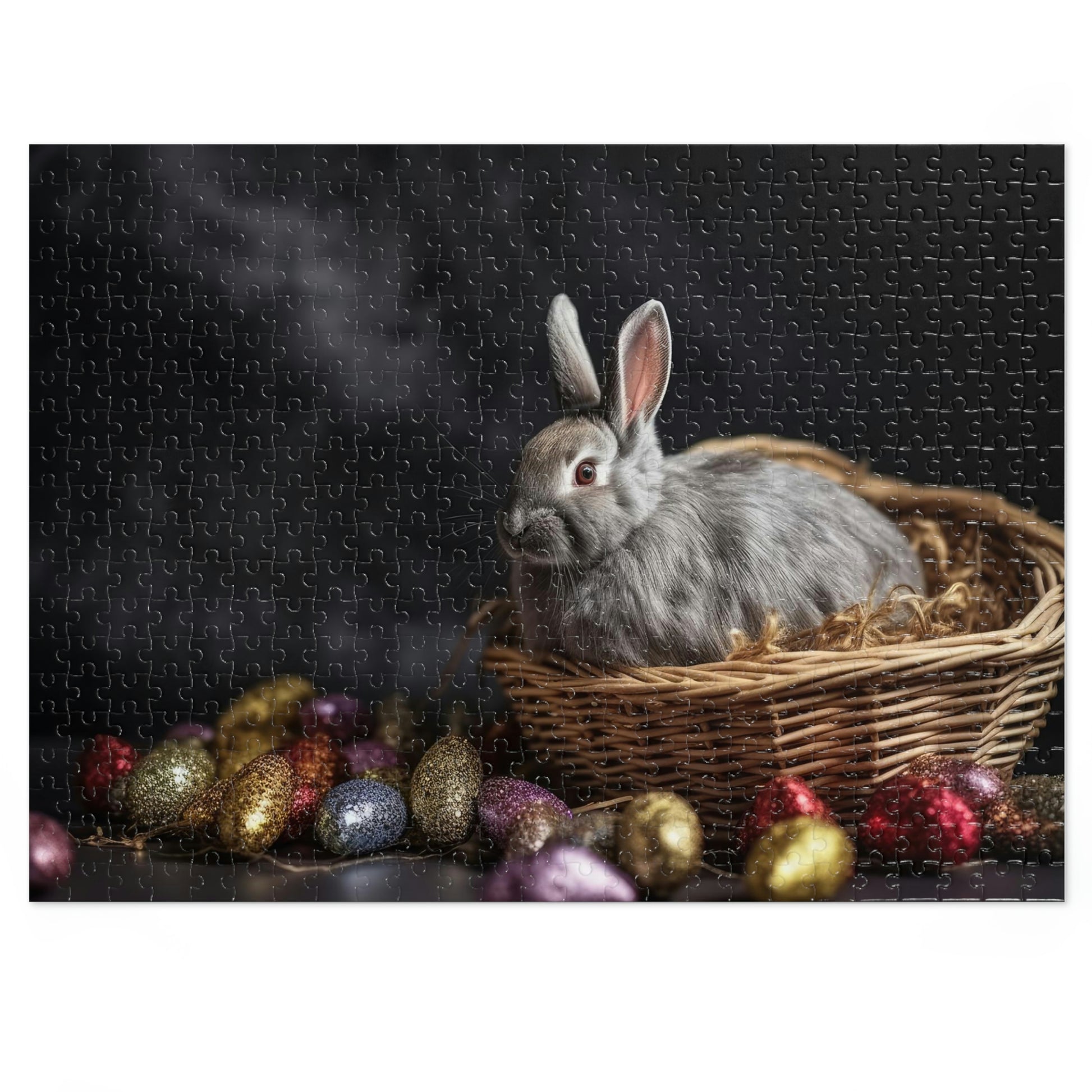 Celebrate the joy of the season with our Whimsical Easter Bunny 4 Puzzle, featuring an adorable image of a fluffy Easter bunny nestled in a charming wicker basket, surrounded by colorful eggs and blossoming spring flowers. Available in 500 and 1000-piece options, this high-quality jigsaw puzzle provides hours of delightful entertainment for children (ages 9+) and adults. Each puzzle is crafted from durable pre-diecut chipboard with a satin finish, ensuring precise interlocking pieces and an enjoyable assembly experience.