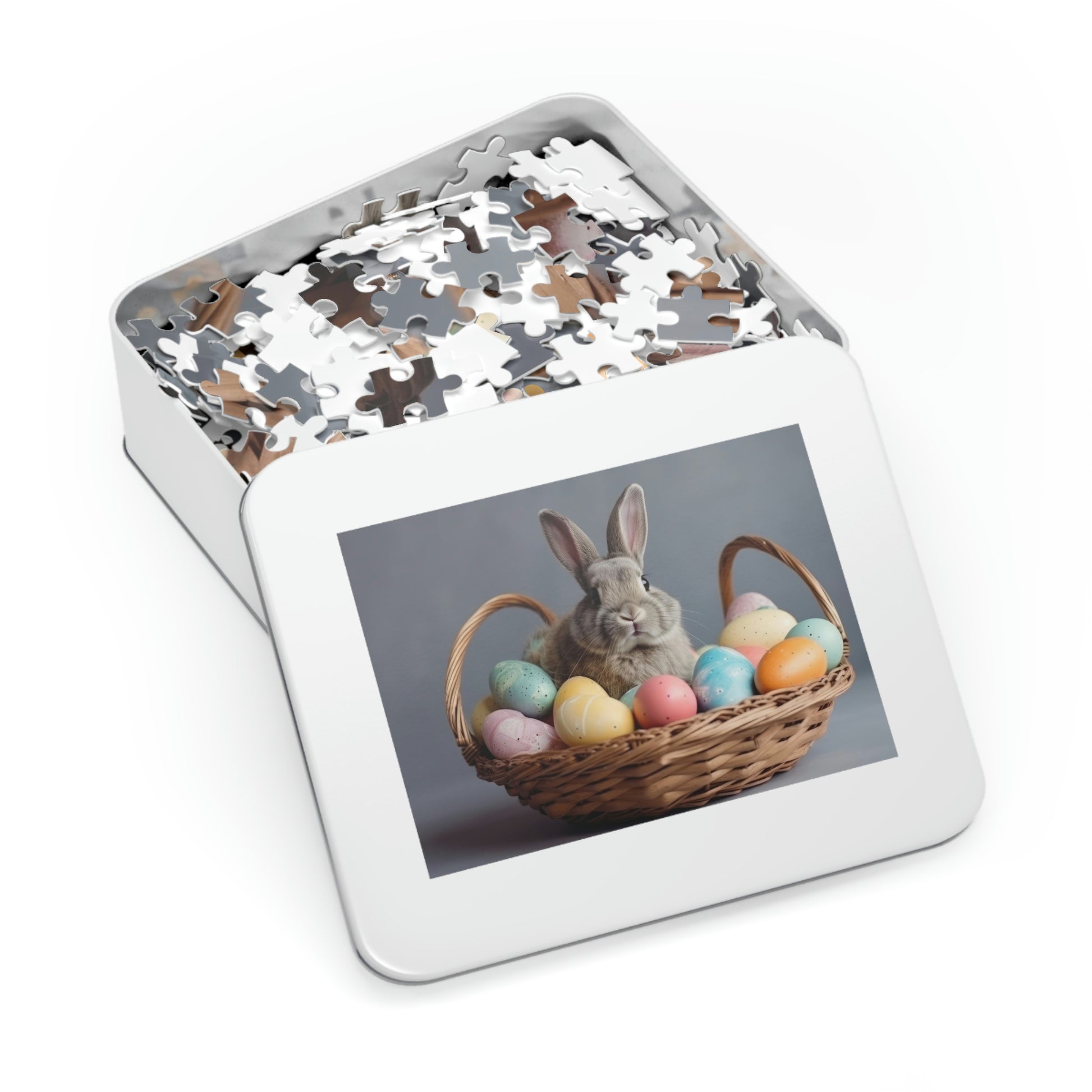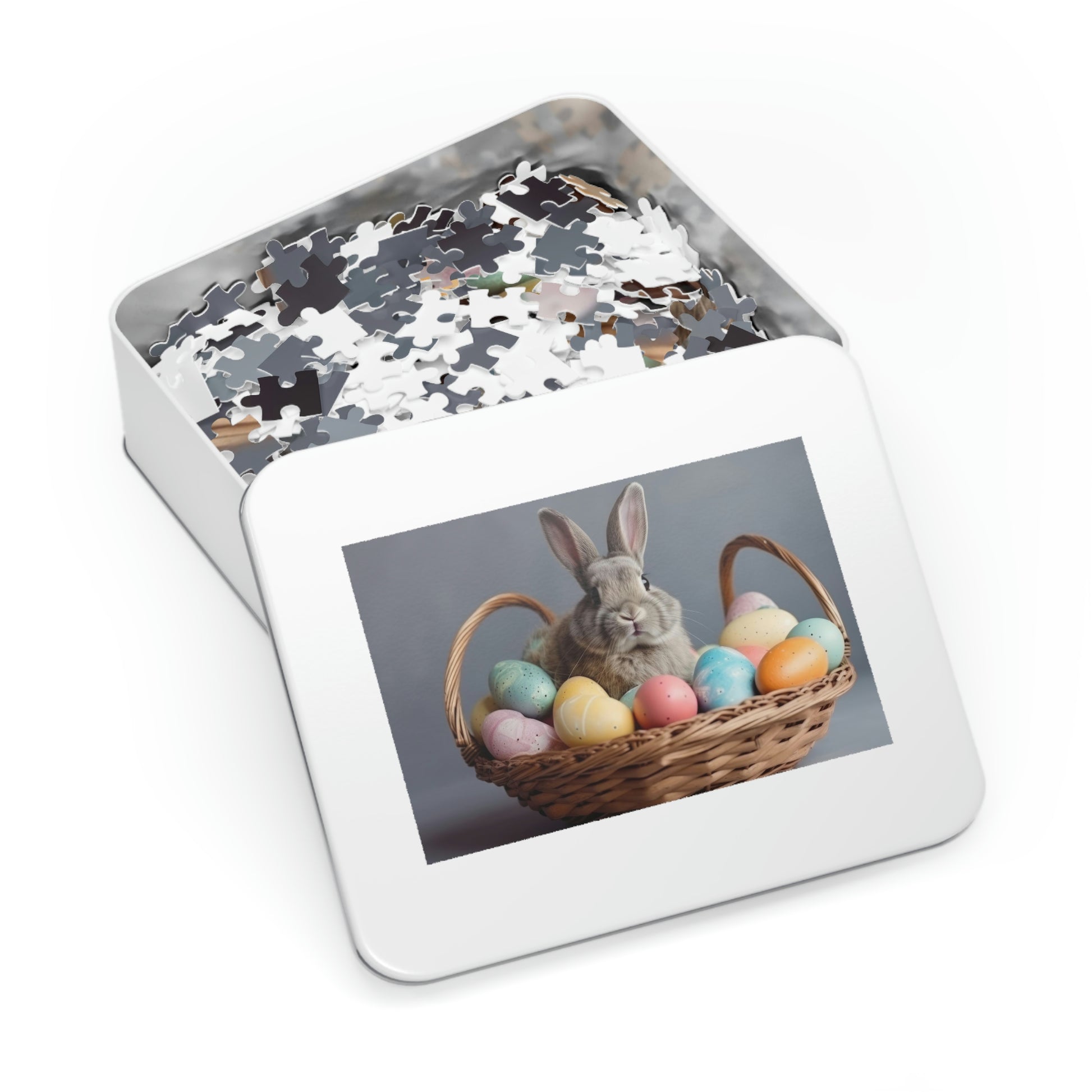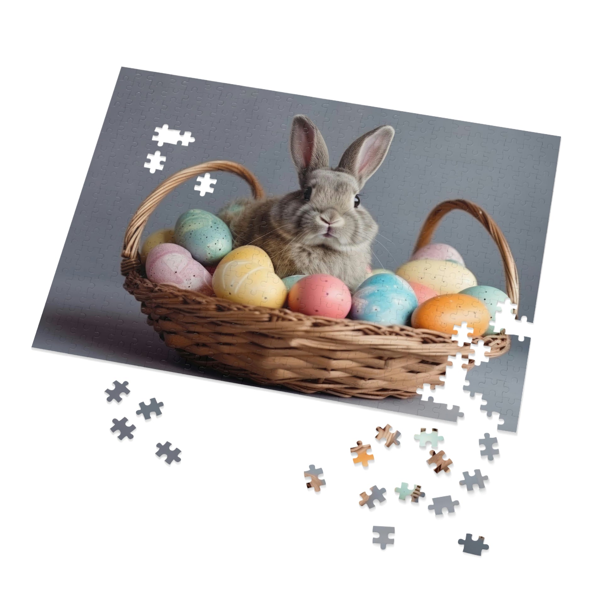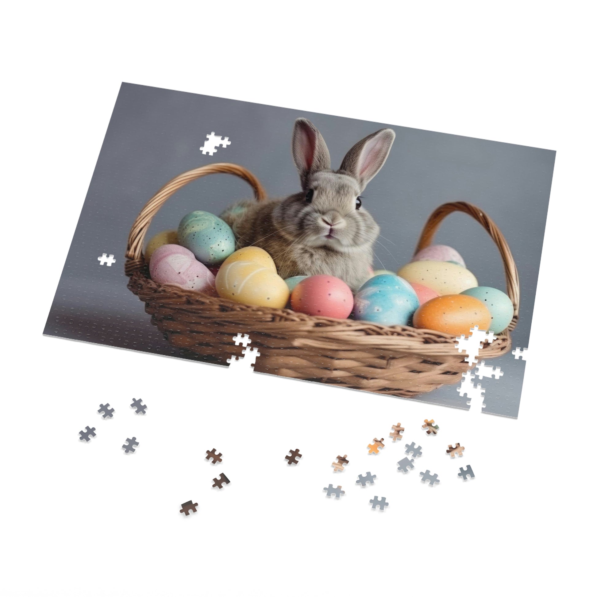 Celebrate the joy of the season with our Whimsical Easter Bunny 6 Puzzle, featuring an adorable image of a fluffy Easter bunny nestled in a charming wicker basket, surrounded by colorful eggs and blossoming spring flowers. Available in 500 and 1000-piece options, this high-quality jigsaw puzzle provides hours of delightful entertainment for children (ages 9+) and adults. Each puzzle is crafted from durable pre-diecut chipboard with a satin finish, ensuring precise interlocking pieces and an enjoyable assembly experience.