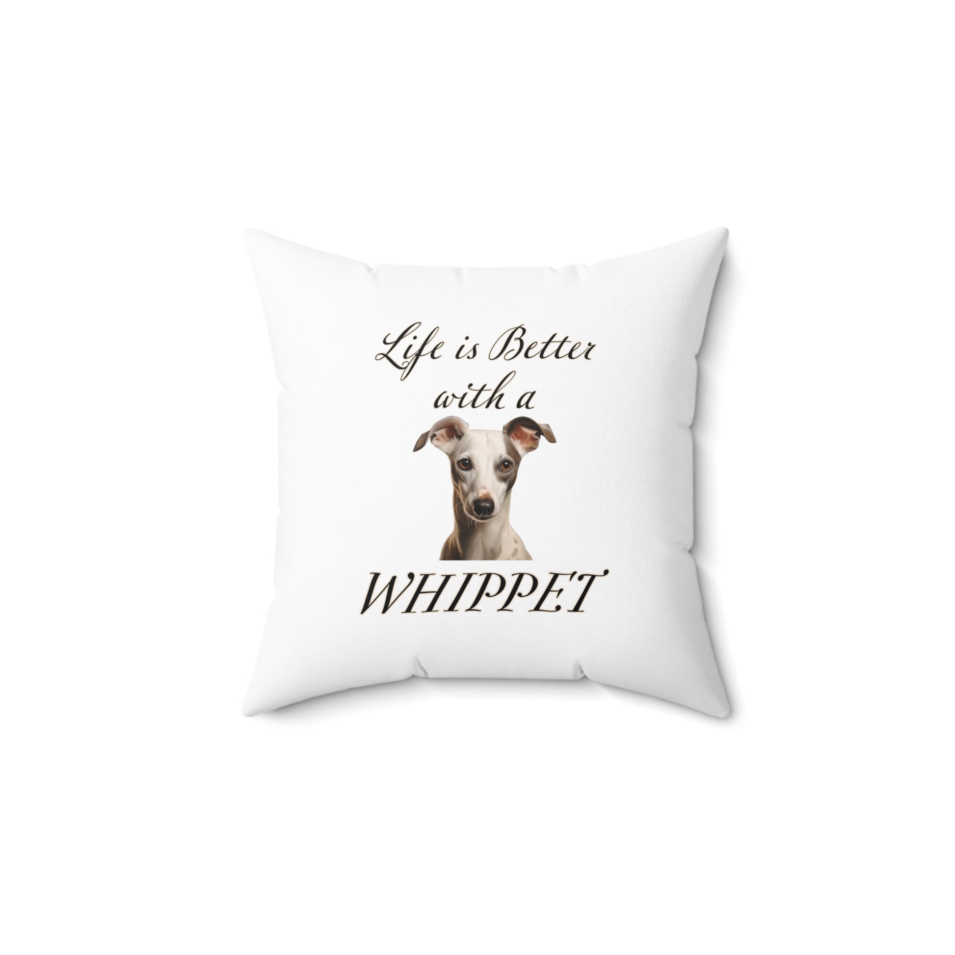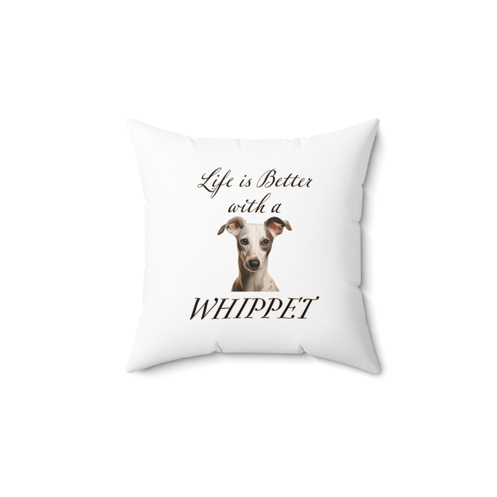Whippet Pillow | Spun Polyester Square White Throw Pillow | Life is Better with a Whippet