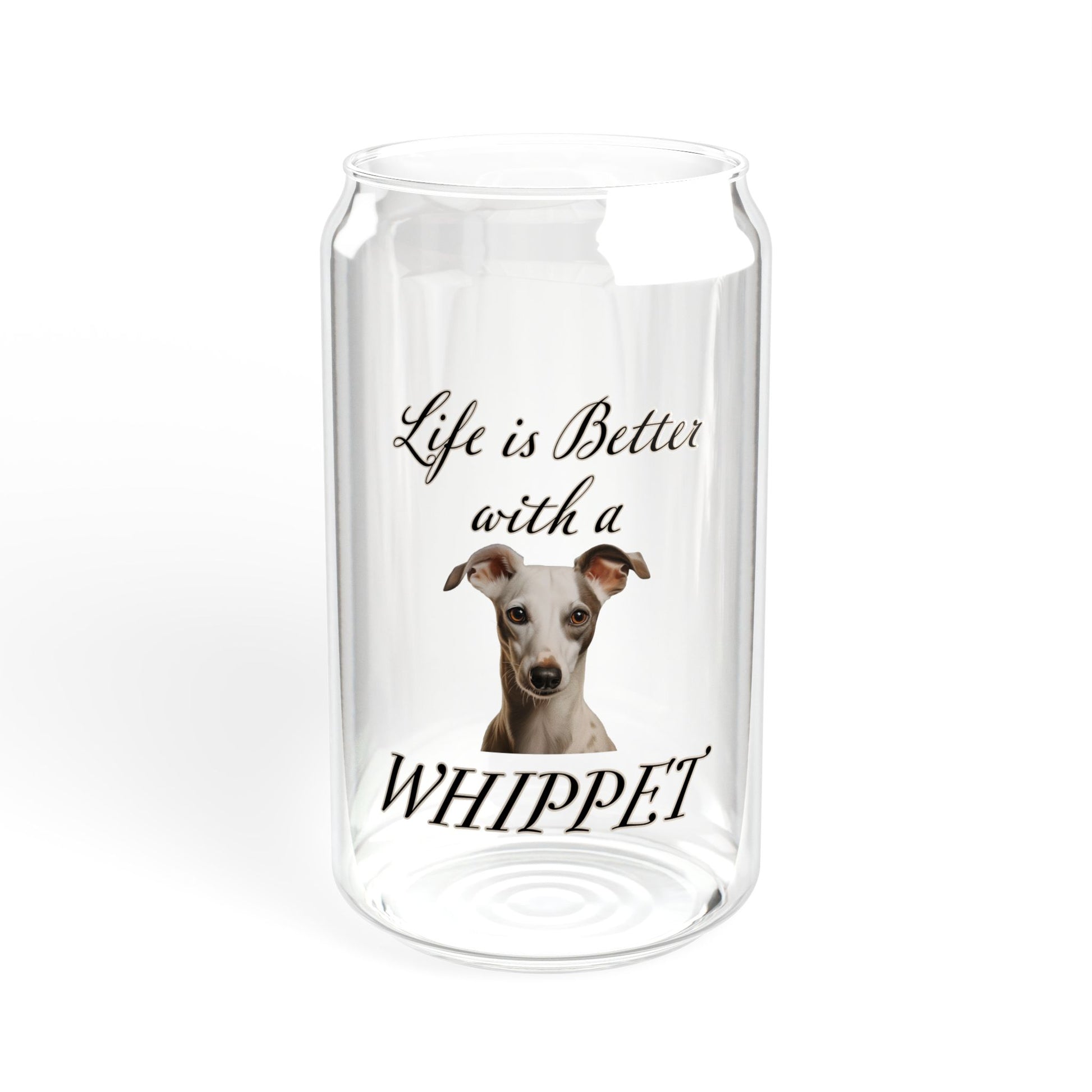 Whippet Sipper Glass with Bamboo Lid and Straw | Pet Glass Tumbler | Dog Mom Beer Can Glass | 16oz