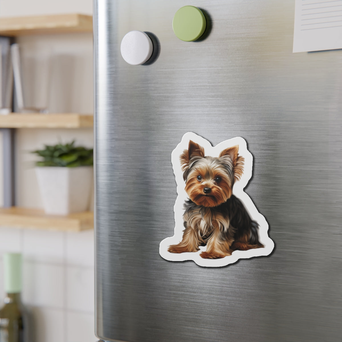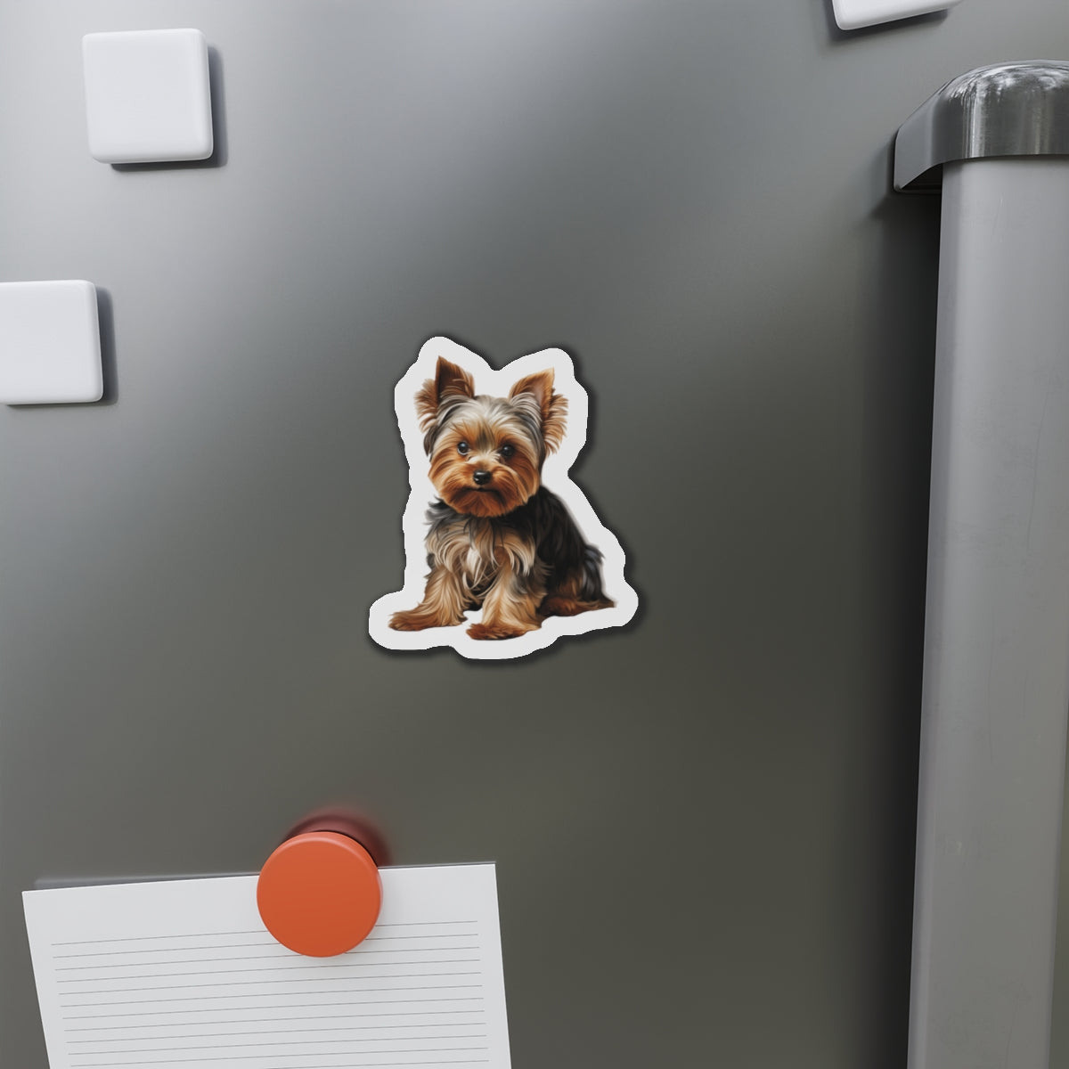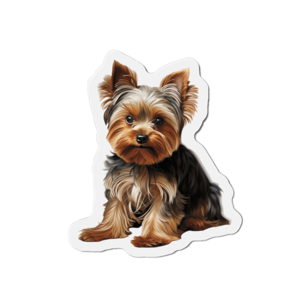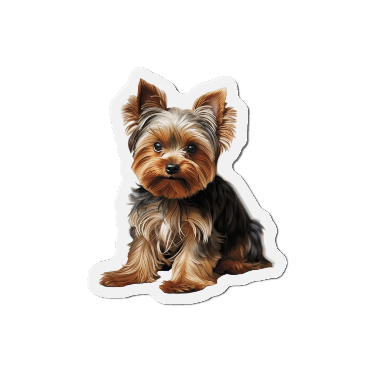 Yorkshire Terrier Magnet - Brighten up your surroundings with a dash of charm. This exquisite magnet, crafted with precision using the die-cut technique, perfectly marries resilience with pliability. Constructed from premium vinyl, it's engineered to endure, maintaining its vivid hues and detailed imagery over time.