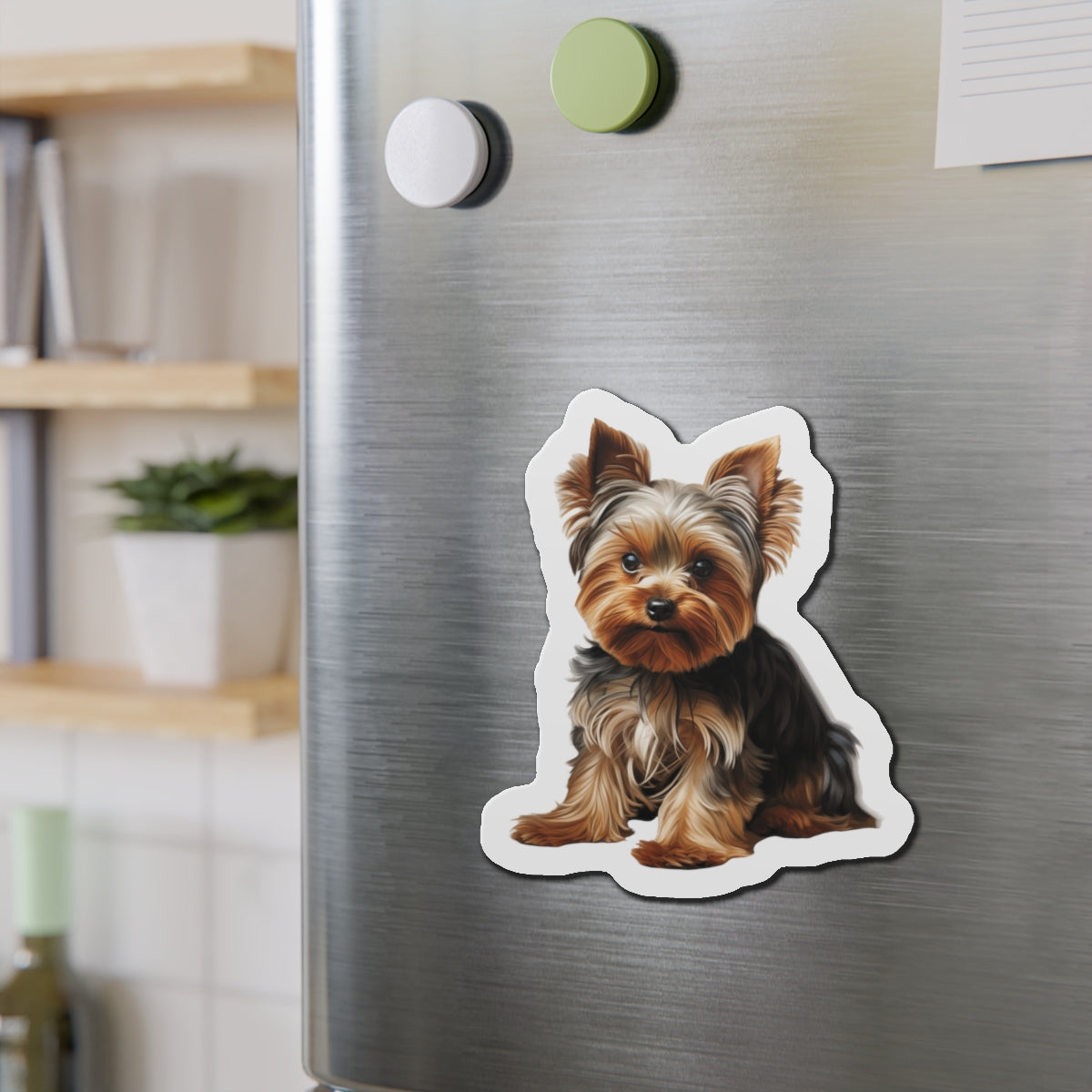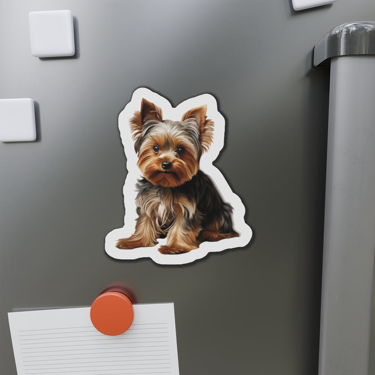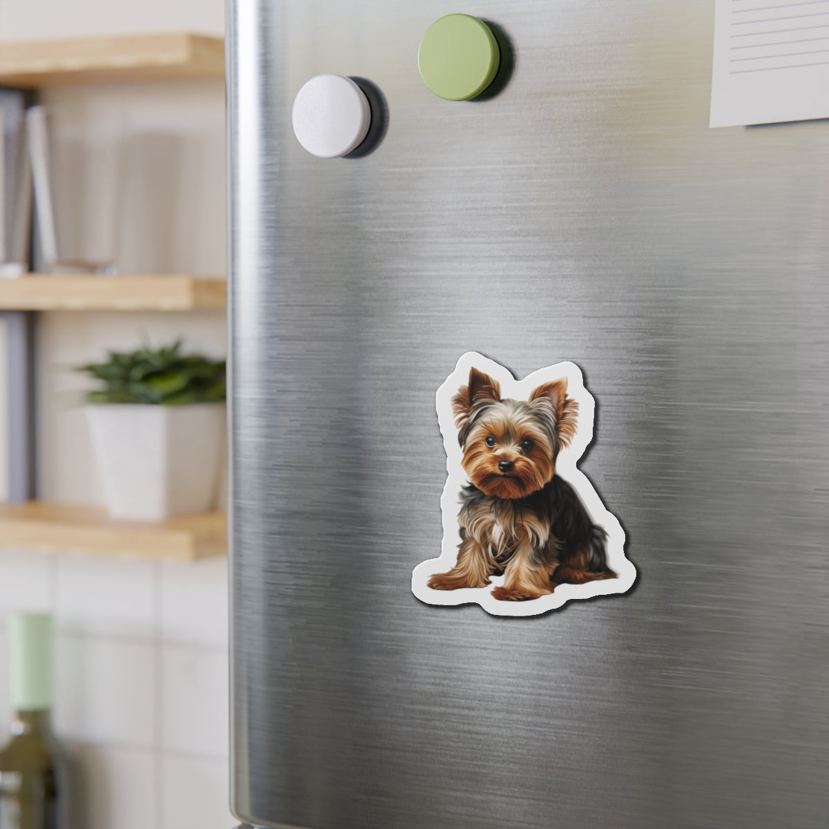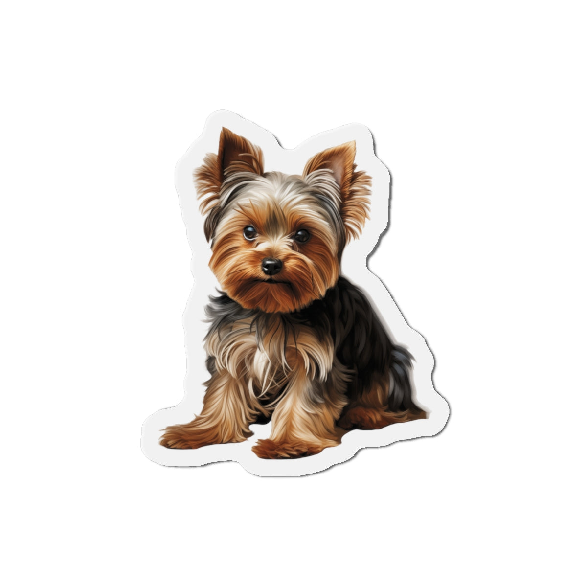 Yorkshire Terrier Magnet - Brighten up your surroundings with a dash of charm. This exquisite magnet, crafted with precision using the die-cut technique, perfectly marries resilience with pliability. Constructed from premium vinyl, it's engineered to endure, maintaining its vivid hues and detailed imagery over time.