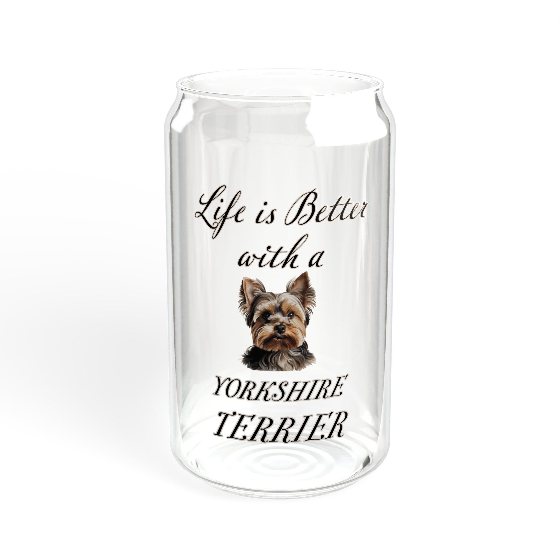 Refresh your day with the 'Life is Better with a Yorkshire Terrier' 16oz Sipper Glass, crafted in celebration of the tiny yet mighty Yorkshire Terrier. This clear tempered glass, robust and elegant, is perfect for Yorkie lovers who appreciate the breed's spirited and affectionate nature.